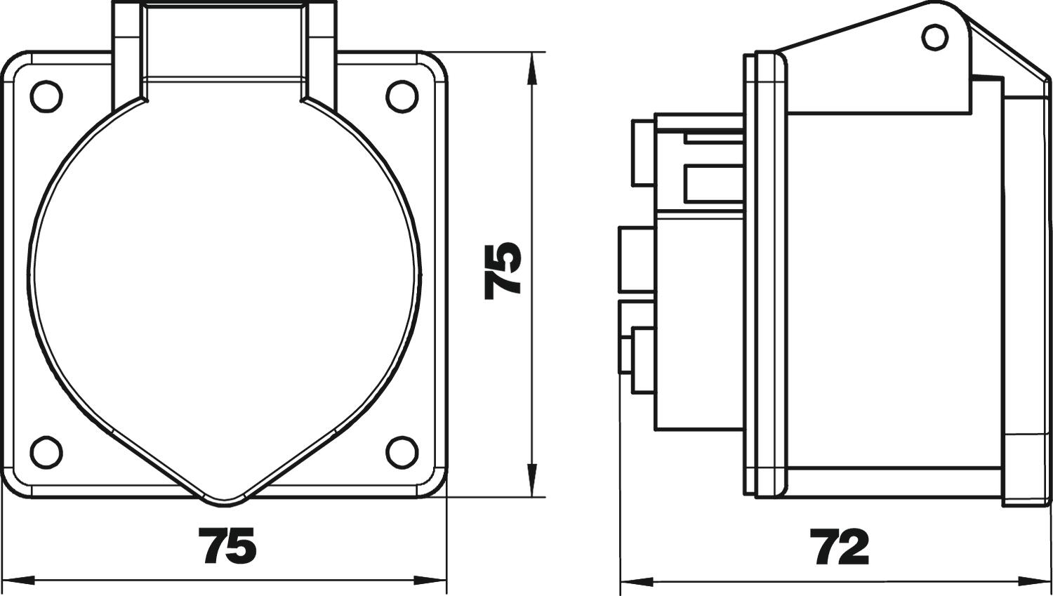 Cable entry Other CO2 Footprint (GWP) Cradle-to-Gate 0,1064 kg CO2e / 1 Piece Connection technology Screwless terminal Dimension 75x75x72 Direction of insertion Straight Drill hole spacing, horizontal 60 mm Drill hole spacing, vertical 60 mm Flange dimension, horizontal 75 mm Flange dimension, vertical 75 mm Height 75 mm Length 72 mm Military version no Nominal current 16 A Nominal voltage 400 V Pole number 5 Protection rating IP44 Voltage according to EN 60309-2 400 V (50+60 Hz) red Width 75 mm - All types