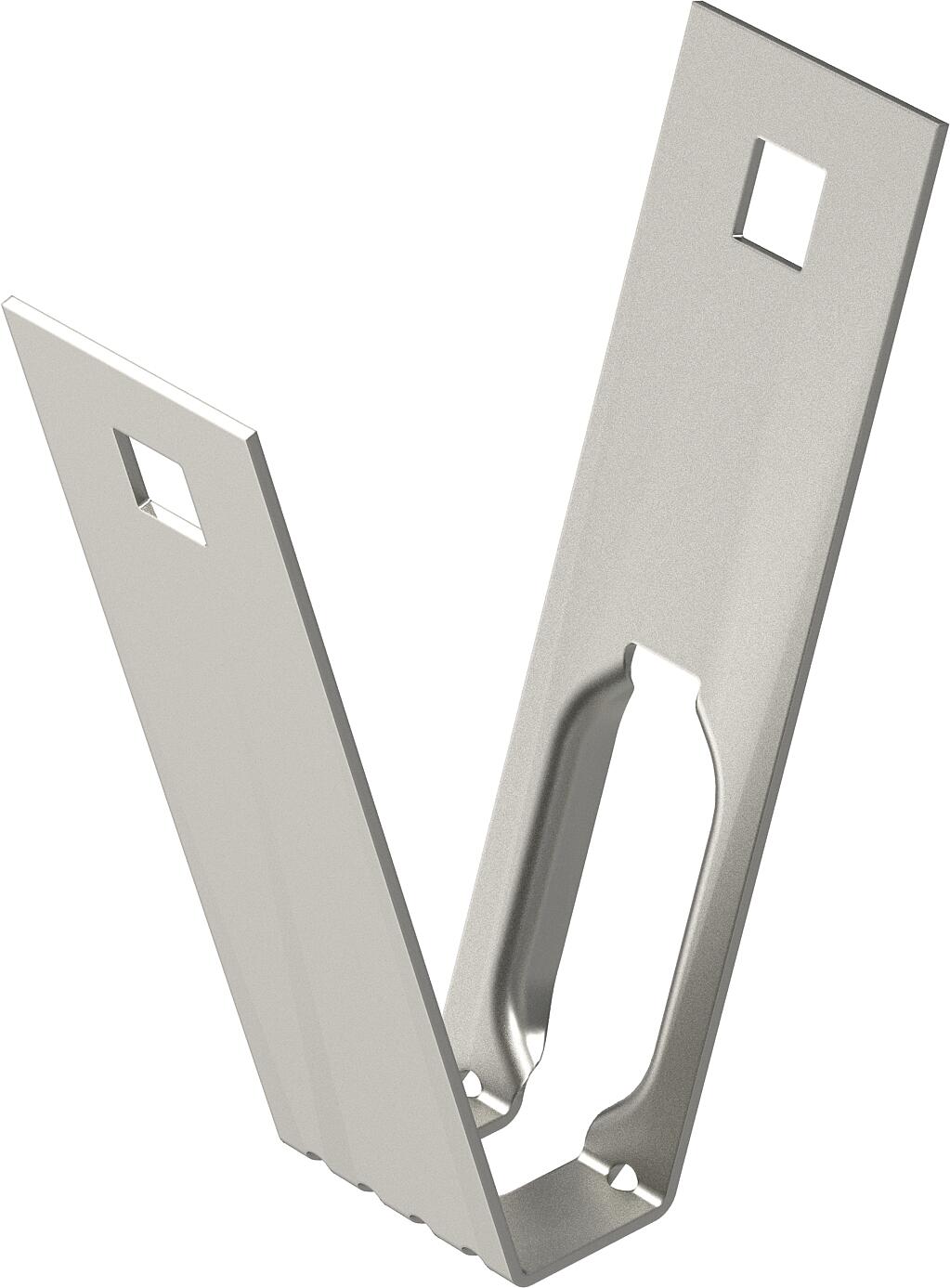 When using the holes provided, the trapezoidal fastening can be mounted onto a trapezoidal profile width of up to approx. 80 mm. Fastening takes place with the type TPB R lock or a hexagonal bolt of type SKS 10x110.