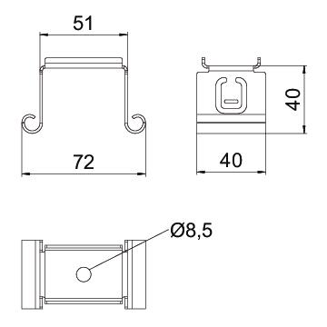 Adjustable no CO2 Footprint (GWP) Cradle-to-Gate 0,1887 kg CO2e / 1 Piece Colour zinc Dimension B70mm Dimension B 72 mm Dimension B1 51 mm for width max. 75 mm for width min. 75 Height 39,5 mm Hole diameter 8,5 mm Length 40 mm Maintain electrical functions no Material Steel Suitable for metric threaded rod 8 Surface Strip galvanized Version for Suspended Width 75 mm - All types