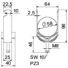 Clamping range D, max. 58 mm Clamping range D, min. 52 mm CO2 Footprint (GWP) Cradle-to-Gate 0,2925 kg CO2e / 1 Piece Dimension 52-58mm Dimension A 25 mm Dimension B 64 mm Dimension C 40 mm Dimension G (mm) M8 Dimension H 96 mm Dimension L 45 mm Dimension t 2,5 mm For pipe diameter, max. 58 mm For pipe diameter, min. 52 mm for rail with slot width (with interval), max. 17 mm for rail with slot width (with interval), min. 16 mm Halogen-free yes Height 96 mm Length 25 mm Length of external dimensions 40 mm Material Steel Material addition Steel Material of trough Plastic Material quality of trough Polypropylene Max. Tightening torque 5 Nm Mounting type Profile rail Number of cables/pipes 1 Plate thickness 2,5 mm Slot width 10 mm Surface Hot-dip galvanised Surface addition hot galvanised Thread M8 Width 64 mm With counter-trough no With plastic trough yes - All types