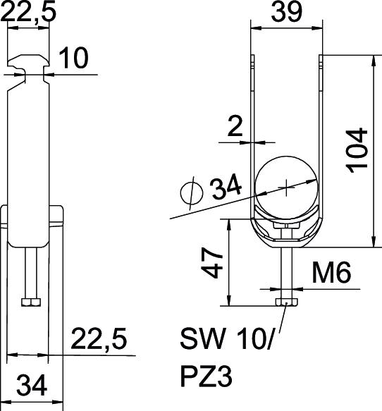 Clamping range D, max. 34 mm Clamping range D, min. 28 mm CO2 Footprint (GWP) Cradle-to-Gate 0,6028 kg CO2e / 1 Piece Dimension 28-34mm Dimension A 22,5 mm Dimension B 39 mm Dimension C 34 mm Dimension G (mm) M6 Dimension H 104 mm Dimension L 47 mm Dimension t 2 mm For pipe diameter, max. 34 mm For pipe diameter, min. 28 mm for rail with slot width (with interval), max. 17 mm for rail with slot width (with interval), min. 16 mm Halogen-free yes Height 104 mm Length 22,5 mm Length of external dimensions 34 mm Material Stainless steel 1.4301 Material addition Rustproof steel Material of trough Plastic Material quality of trough Polypropylene Max. Tightening torque 3 Nm Mounting type Profile rail Number of cables/pipes 2 Plate thickness 2 mm Slot width 10 mm Surface Bright, treated Surface addition Untreated Thread M6 Width 39 mm With counter-trough no With plastic trough yes - All types