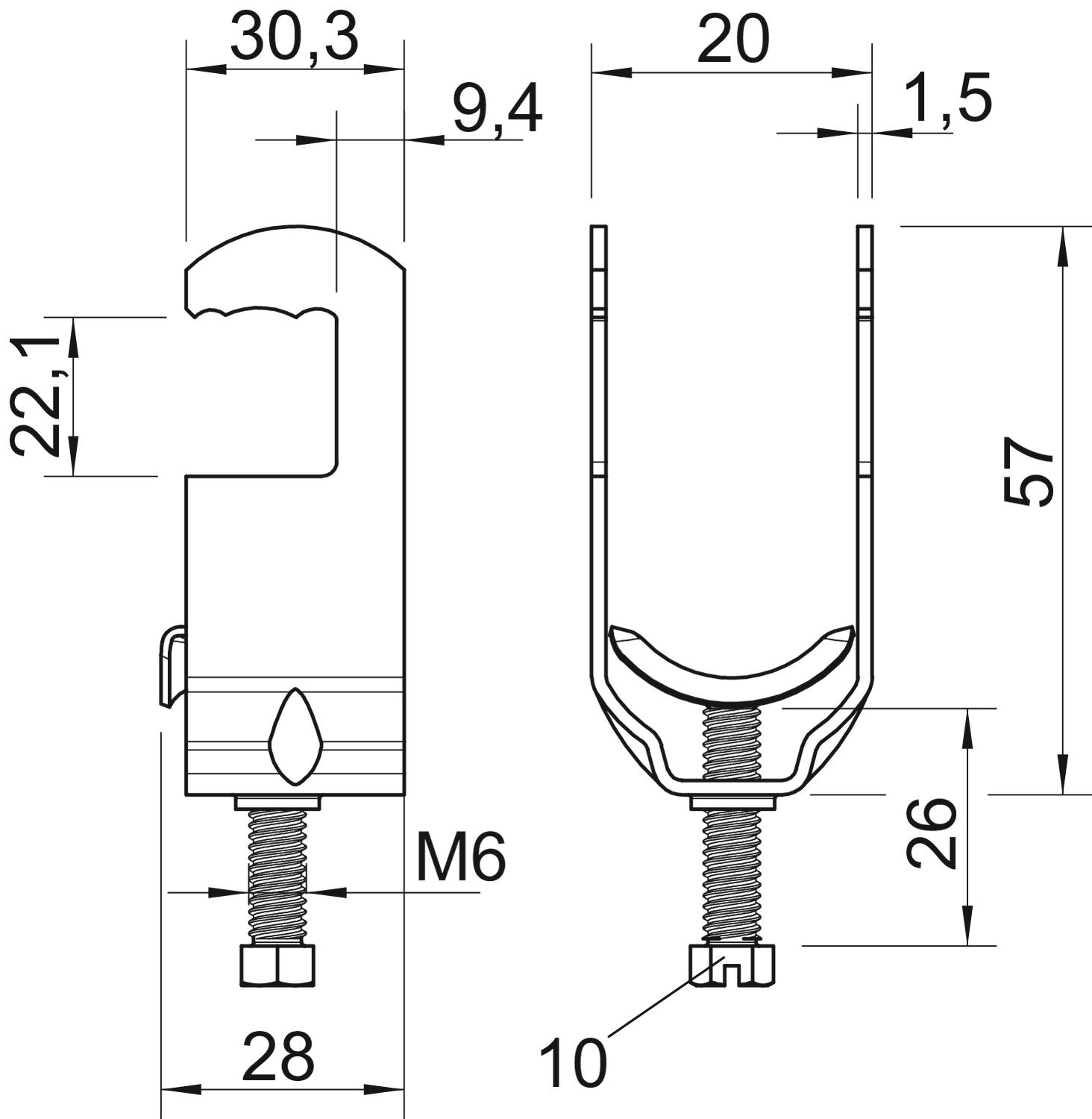 Clamping range D, max. 16 mm Clamping range D, min. 12 mm CO2 Footprint (GWP) Cradle-to-Gate 0,0994 kg CO₂e / 1 Piece Dimension 12-16mm Dimension B 20 mm Dimension C 28 mm Dimension G (mm) M6 Dimension H 57 mm Dimension L 26 mm Dimension t 1,5 mm For pipe diameter, max. 16 mm For pipe diameter, min. 16 mm Halogen-free no Impact-resistant no Material Steel Material addition Steel Material of trough Steel Max. Tightening torque 3 Nm Mounting type Round profile Number of cables/pipes 1 Surface Hot-dip galvanised Surface addition hot galvanised With counter-trough no With metal trough yes With plastic trough no - All types