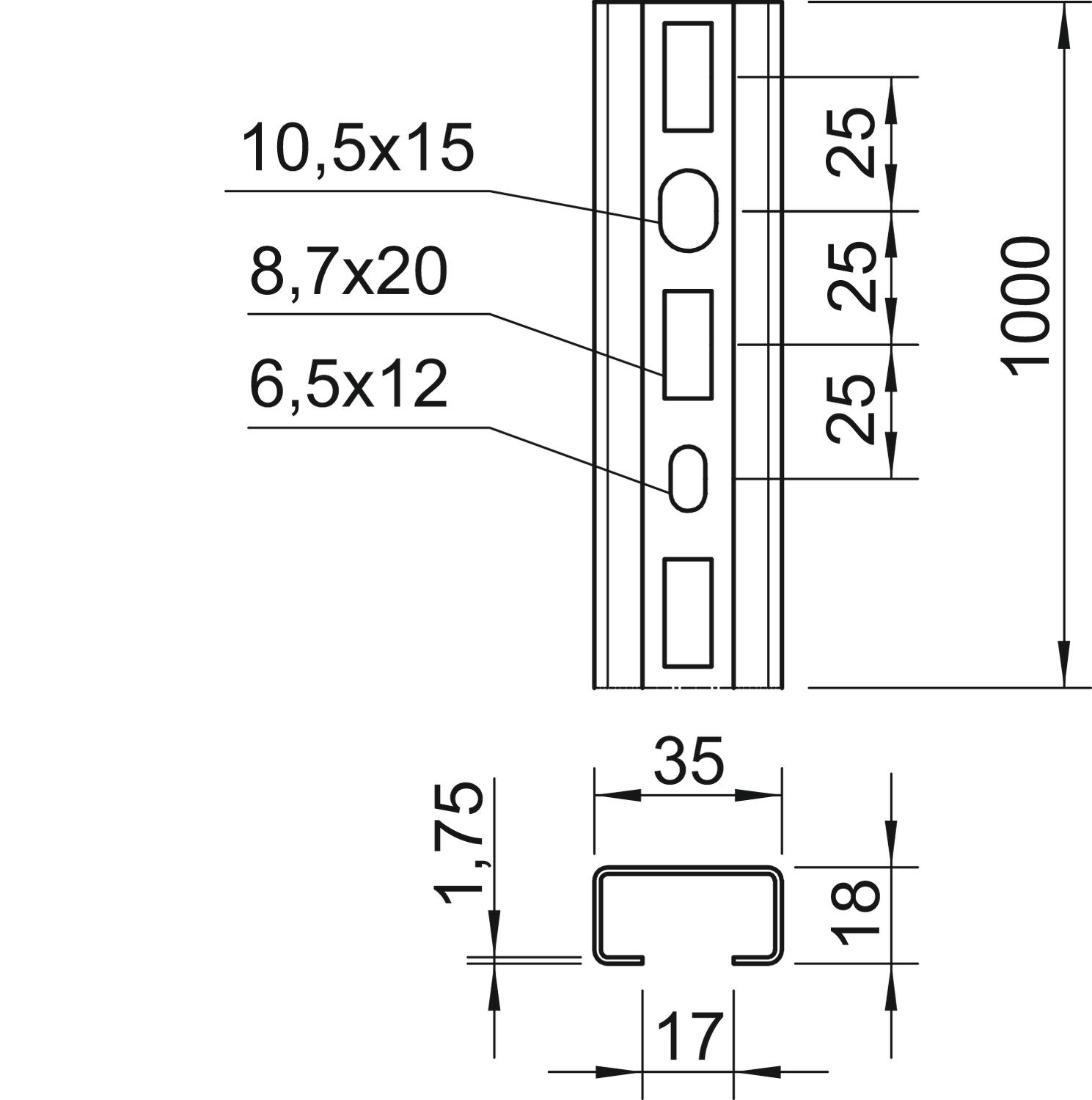 Breakable no CO2 Footprint (GWP) Cradle-to-Gate 2,2703 kg CO2e / 1 Meter Dimension 1000x35x18 Dimension L 1000 mm Height 18 mm Length 1000 mm Maintain electrical functions yes Material Steel Material thickness 1,75 mm Profile shape C profile Rustproof steel, pickled no Slot width 17 mm Static value A 0,88 cm² Static value ly 0,41 cm⁴ Static value lz 1,81 cm⁴ Static value Wy 0,41 cm³ Static value Wz 1,03 cm³ Surface Hot-dip galvanised Type of perforation Perforated back Version for Single profile Width 35 mm With perforation yes With toothing no - All types