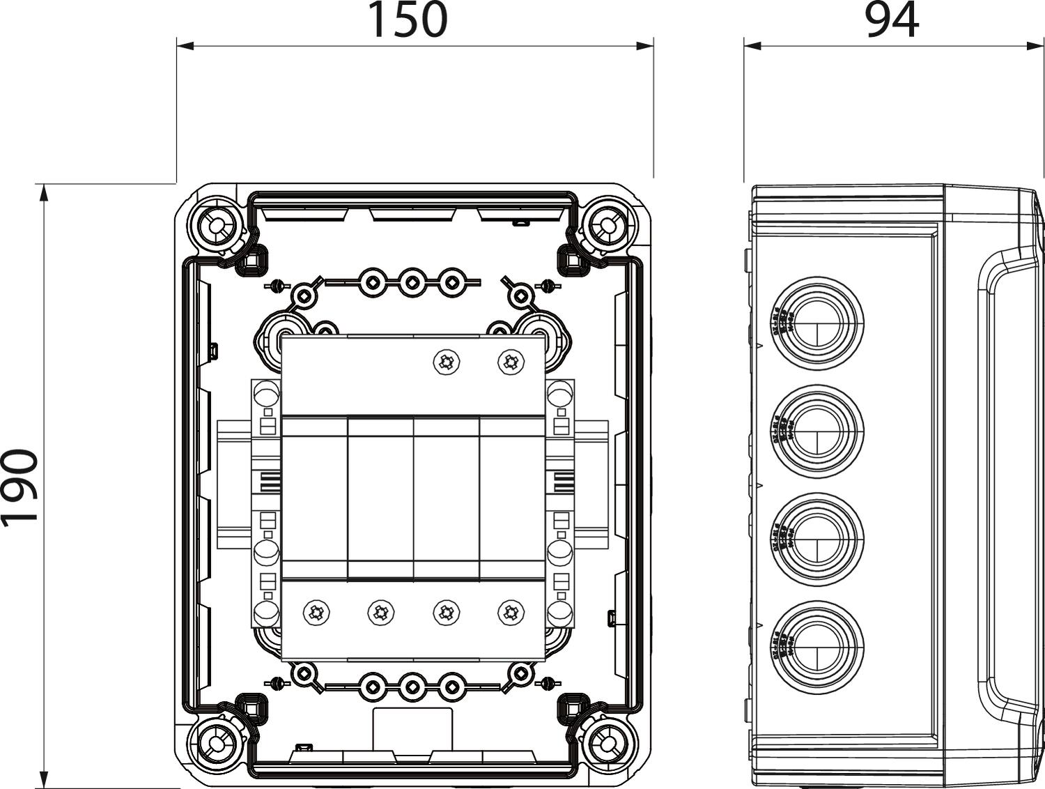 • Lightning current arresting capacity 12.5 kA (10/350) per pole and up to 50 kA (10/350) in total