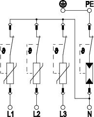 • Lightning current arresting capacity of 12.5 kA (10/350) per pole and up to 50 kA (10/350) in total