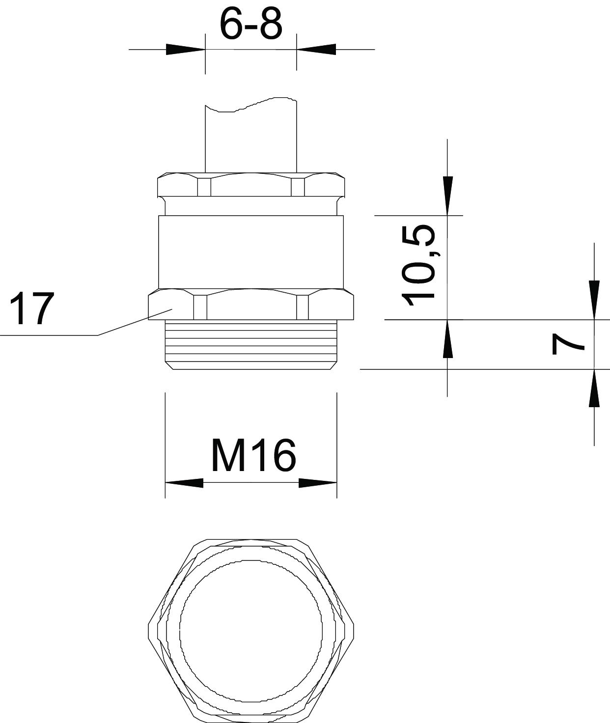 Bend protection no CO2 Footprint (GWP) Cradle-to-Gate 0,0393 kg CO2e / 1 Piece Dimension M16 Dimension E 18,9 mm Dimension L1 7 mm Dimension L2 10,5 mm explosion-proof no Fibre-glass reinforced no Flat cable gland no For Ex zone Without Halogen-free no Impact-resistant no Material Brass Protection rating IP54 Sealing area D, max. 8 mm Sealing area D, min. 6 mm Sealing insert, multiple no Strain relief option no Surface Nickel-plated Thread M16 x 1,5 Thread length 7 mm Thread type Metric Type of seal Sealing ring WAF 1 17 mm WAF 2 15 mm With locknut no - All types