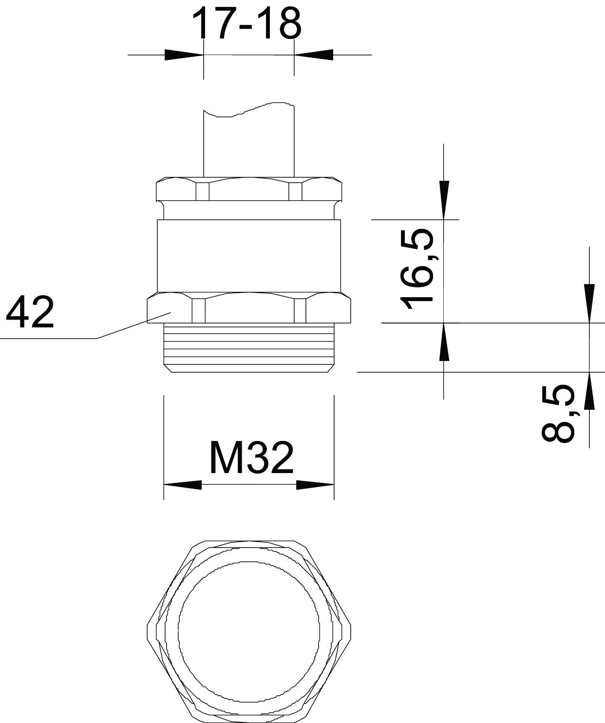 Product descriptionCable gland with hexagonal intermediate connector, shape C4, to DIN 46320 with metric connection thread to DIN EN 60423 and ISO 68. Pressure rings made of electrogalvanised and transparently passivated steel.