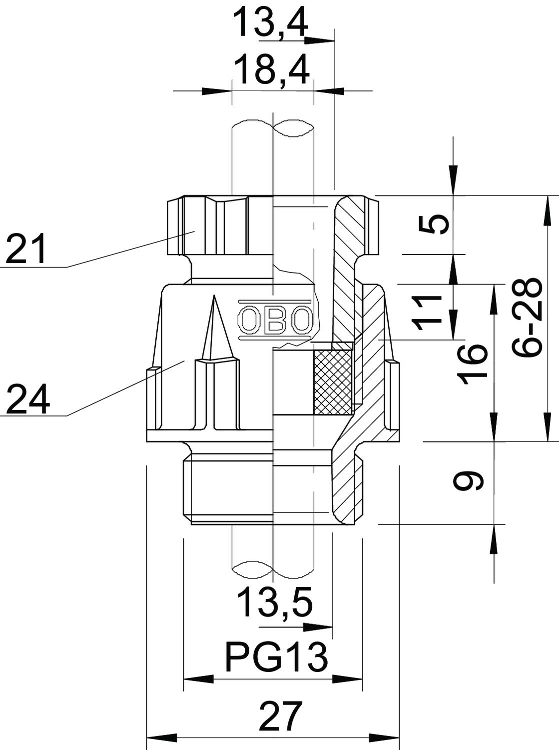 Product descriptionStandard cable gland, shape A, to DIN 46320 with simple NR/SBR sealing ring