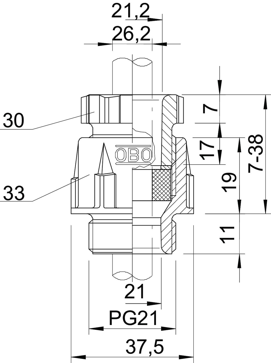 Bend protection no CO2 Footprint (GWP) Cradle-to-Gate 0,0856 kg CO2e / 1 Piece Colour Light grey; RAL 7035 Dimension PG21 Dimension D2 37,5 mm Dimension D3 21,2 mm Dimension D4 21 mm Dimension E1 (mm) 37,5 mm Dimension E2 21,2 mm Dimension E3 39 mm Dimension L max. 38 mm Dimension L min. 7 mm Dimension L1 11 mm Dimension L2 19 mm Dimension L3 7 mm Dimension L4 17 mm explosion-proof no Fibre-glass reinforced no For Ex zone Without For Ex zone dust Without For Ex zone gas Without Halogen-free yes Impact-resistant no Material Polystyrene Nominal thread size 21 Permitted temperature range, max. 65 °C Permitted temperature range, min. -20 °C Protection rating IP65 Sealing area D, max. 18 mm Sealing area D, min. 14 mm Sealing insert, multiple no Splittable gland no Strain relief option no Thread Pg 21 Thread type PG Type of seal Sealing ring Version for Straight WAF 1 33 mm WAF 2 30 mm WAF 3 36 mm With locknut no - All types