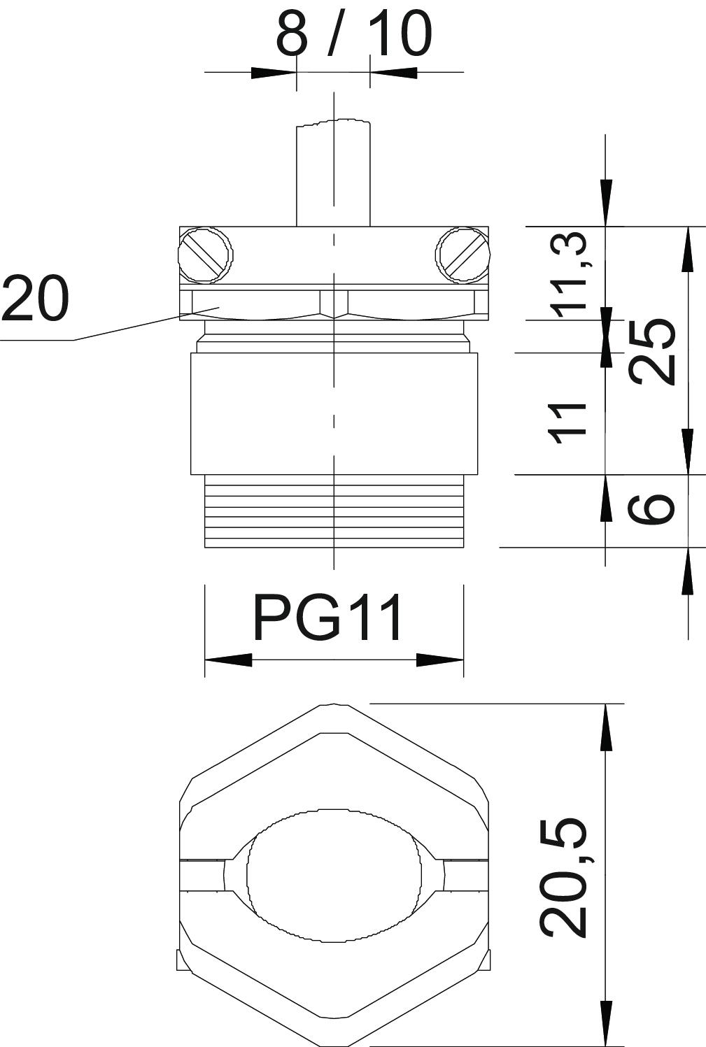 Bend protection no CO2 Footprint (GWP) Cradle-to-Gate 0,1177 kg CO2e / 1 Piece Dimension PG11 Dimension E 24,5 mm Dimension L max. 25 mm Dimension L1 6 mm Dimension L2 11 mm Dimension L3 11,3 mm explosion-proof no Fibre-glass reinforced no Flat cable gland no For Ex zone Without Halogen-free no Impact-resistant no Material Brass Protection rating IP54 Sealing area D, max. 10 mm Sealing area D, min. 8 mm Sealing insert, multiple no Strain relief option yes Surface Nickel-plated Thread Pg 11 Thread length 6 mm Thread type PG Type of seal Sealing ring WAF 20 WAF 1 20 mm WAF 2 22 mm With locknut no - All types