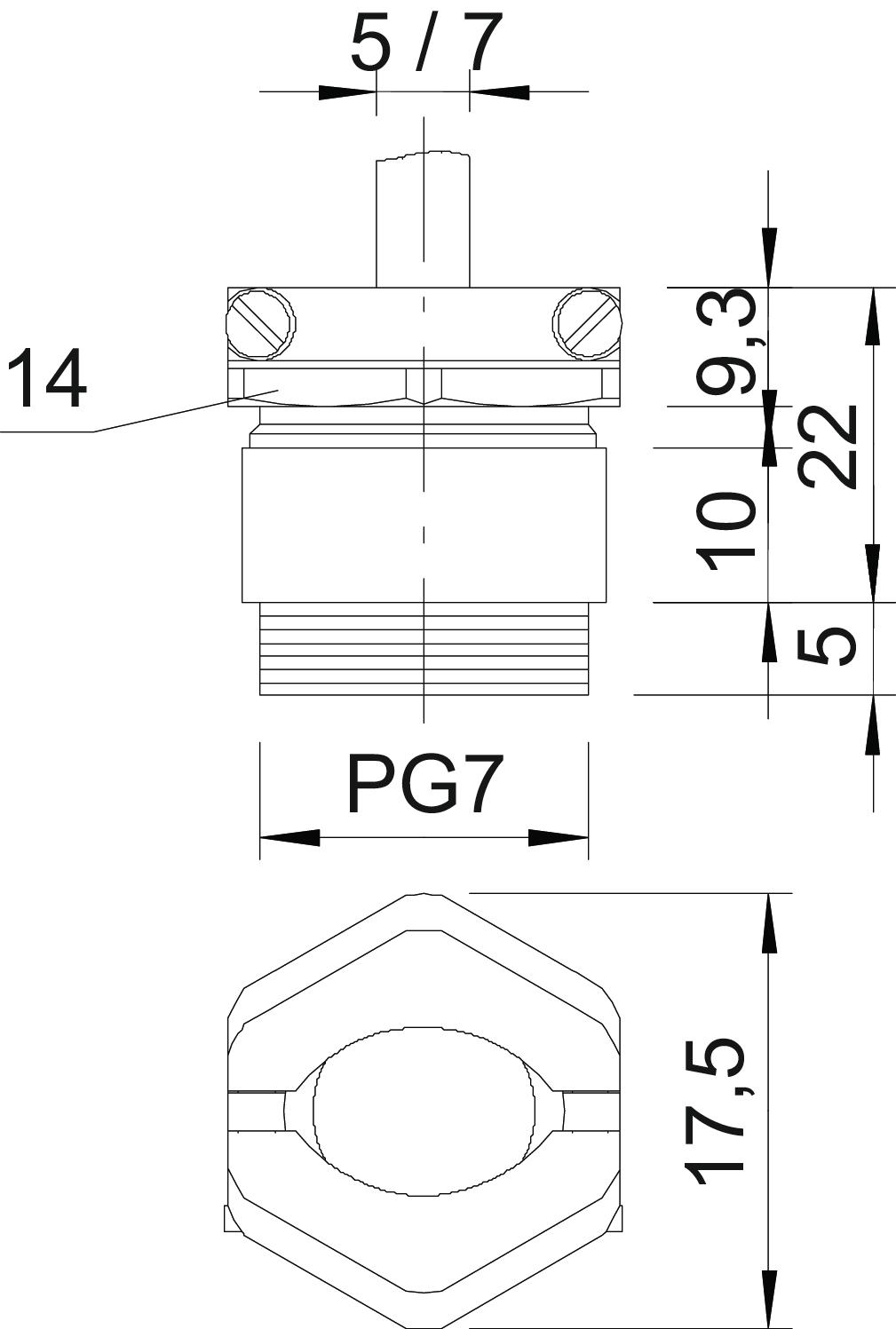 Bend protection no CO2 Footprint (GWP) Cradle-to-Gate 0,0489 kg CO2e / 1 Piece Dimension PG7 Dimension E 17,5 mm Dimension L max. 22 mm Dimension L1 5 mm Dimension L2 10 mm Dimension L3 9,3 mm explosion-proof no Fibre-glass reinforced no Flat cable gland no For Ex zone Without Halogen-free no Impact-resistant no Material Brass Protection rating IP54 Sealing area D, max. 7 mm Sealing area D, min. 5 mm Sealing insert, multiple no Strain relief option yes Surface Nickel-plated Thread Pg 7 Thread length 5 mm Thread type PG Type of seal Sealing ring WAF 14 WAF 1 14 mm WAF 2 16 mm With locknut no - All types