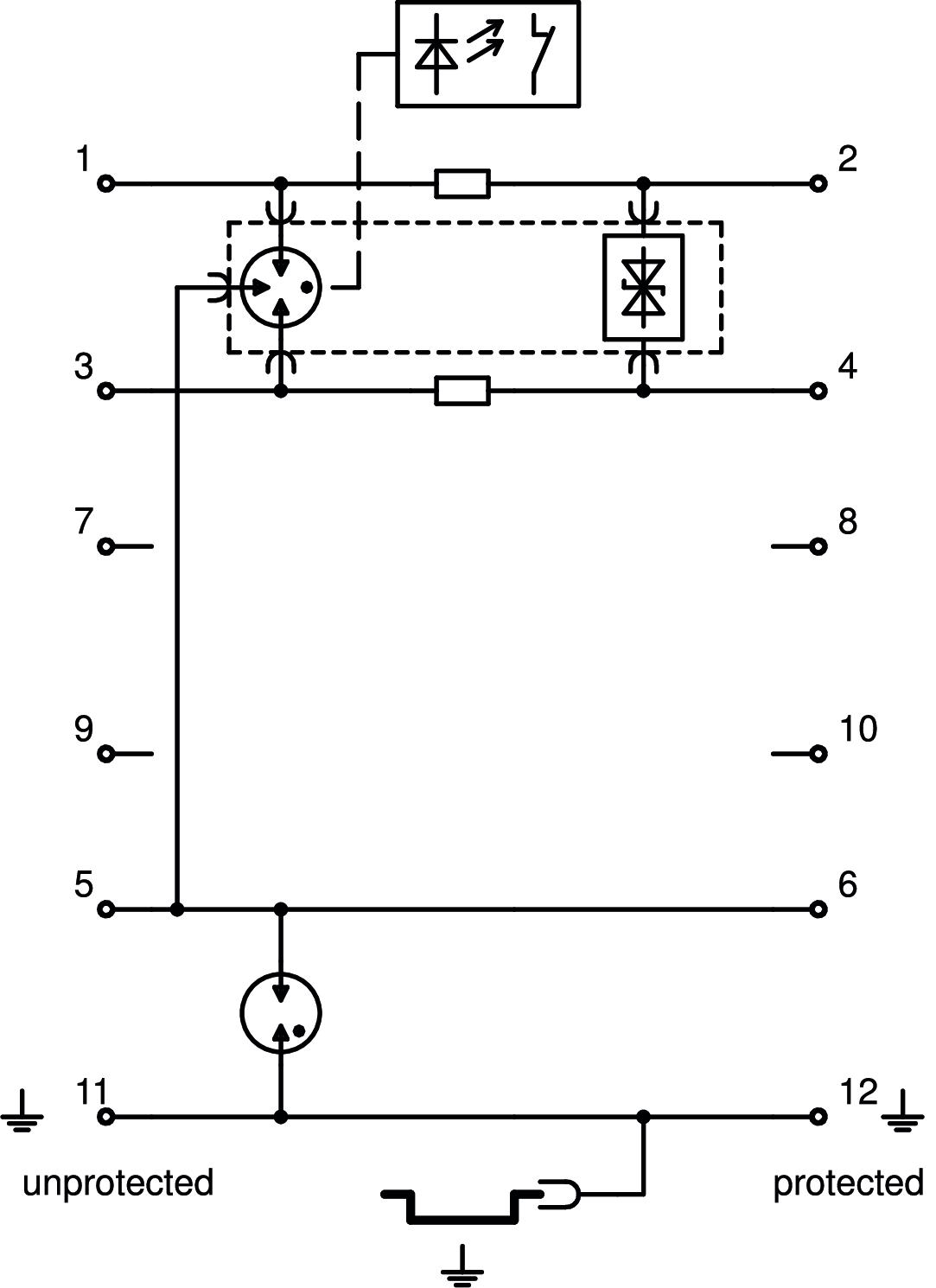 Capacity (wire-earth) ≤30 pF Capacity (wire-wire) ≤30 pF CO2 Footprint (GWP) Cradle-to-Gate 0,811 kg CO2e / 1 Piece Connection cross-section, flexible, max. 1,5 mm² Connection cross-section, flexible, min. 0,14 mm² Connection cross-section, multi-wire, max. 2,5 mm² Connection cross-section, multi-wire, min. 0,14 mm² Connection cross-section, rigid, max. 2,5 mm² Connection cross-section, rigid, min. 0,14 mm² Cut-off frequency 100 MHz Dimension 5V Earthing via: Connection cable / DIN rail Height 95 mm Impulse durability wire-earth 10 kV / 5 kA Impulse durability wire-wire 10 kV / 5 kA Insertion loss ≤3 dB Kategorie Type 1+2 / D1+C2 Length 75 mm Lengthwise resistance 1.2 ± 5% Lightning impulse current 2,5 kA Lightning protection zone LPZ 0→2 Maximum continuous voltage AC 4,2 V Maximum continuous voltage DC 6 V Mounting of input / output Screw terminals Nominal discharge current (8/20 µs) 10 kA Nominal load current AC 0,425 A Nominal load current DC 0,6 A Number of poles 4 Permitted temperature range, max. 80 °C Permitted temperature range, min. -40 °C Plug-in system Terminal Protection level wire-earth 1600 V Protection level wire-wire 100 V Protection level, shield-earth (S-PE) 1300 V Protection rating IP20 Screening Indirect Series resistance per wire 1,2 Ω ± 5% Shielding connection available yes Signalling on device None SPD to EN 61643-11 Type 1+2 SPD to IEC 61643-1 Class I+II SPD to IEC 61643-21 Class I+II / D1+C2 Testing standard IEC 61643-21 Total discharge current (10/350) 2,5 kA Total discharge current (8/20) 20 kA Total impulse durability into C2 (8/20) 20 kA Version for 2x2-pole Width 17,5 mm - All types
