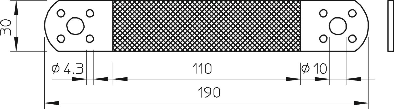 • Each end with 1 fastening hole Ø 10 mm and 4 fastening holes Ø 4.3 mm