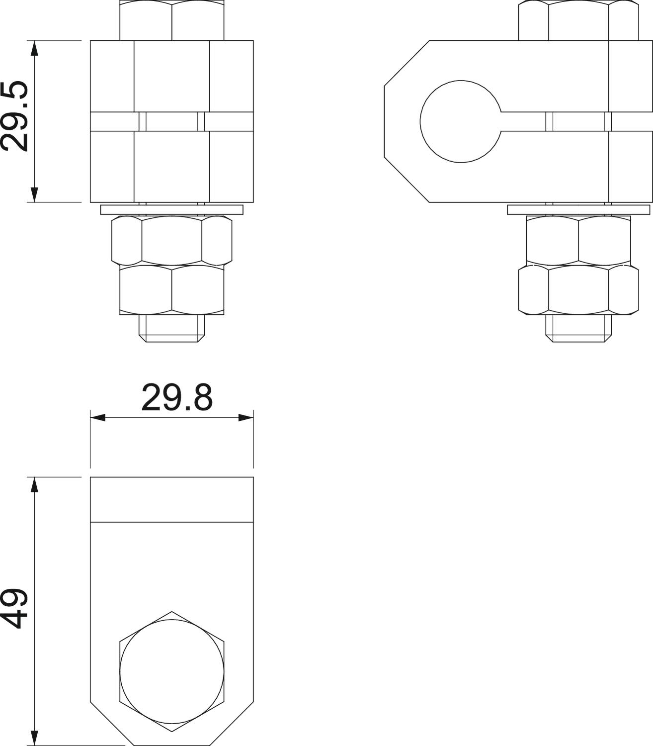 Connection Flat conductor Dimension 49x29x28 for earth rods 14,2 mm Height 50 mm Intermediate plate yes Length 50 mm Material Red bronze Type Connection clip Type of connector Clamp connector Width 30 mm - All types