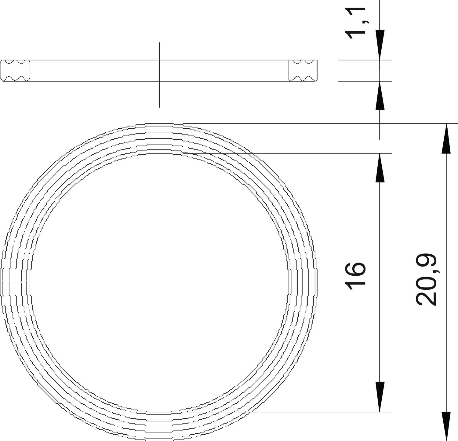 CO2 Footprint (GWP) Cradle-to-Gate 0,0014 kg CO2e / 1 Piece Dimension M16 Dimension D1 20,9 mm Dimension D2 16 mm Dimension t 1,1 mm External diameter 20,9 mm Inner diameter 16 mm Material Polyethylene Suitable for metric thread dimension 16 Thickness 1,1 mm Version for Flat sealing ring - All types