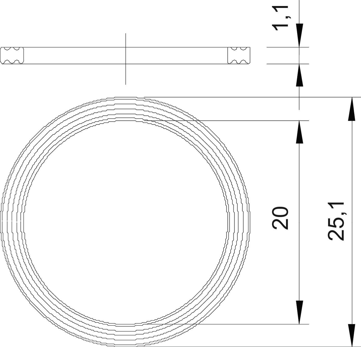 CO2 Footprint (GWP) Cradle-to-Gate 0,0099 kg CO2e / 1 Piece Dimension M20 Dimension D1 25,1 mm Dimension D2 20 mm Dimension t 1,1 mm External diameter 25,1 mm Inner diameter 20 mm Material Polyethylene Suitable for metric thread dimension 20 Thickness 1,1 mm Version for Flat sealing ring - All types