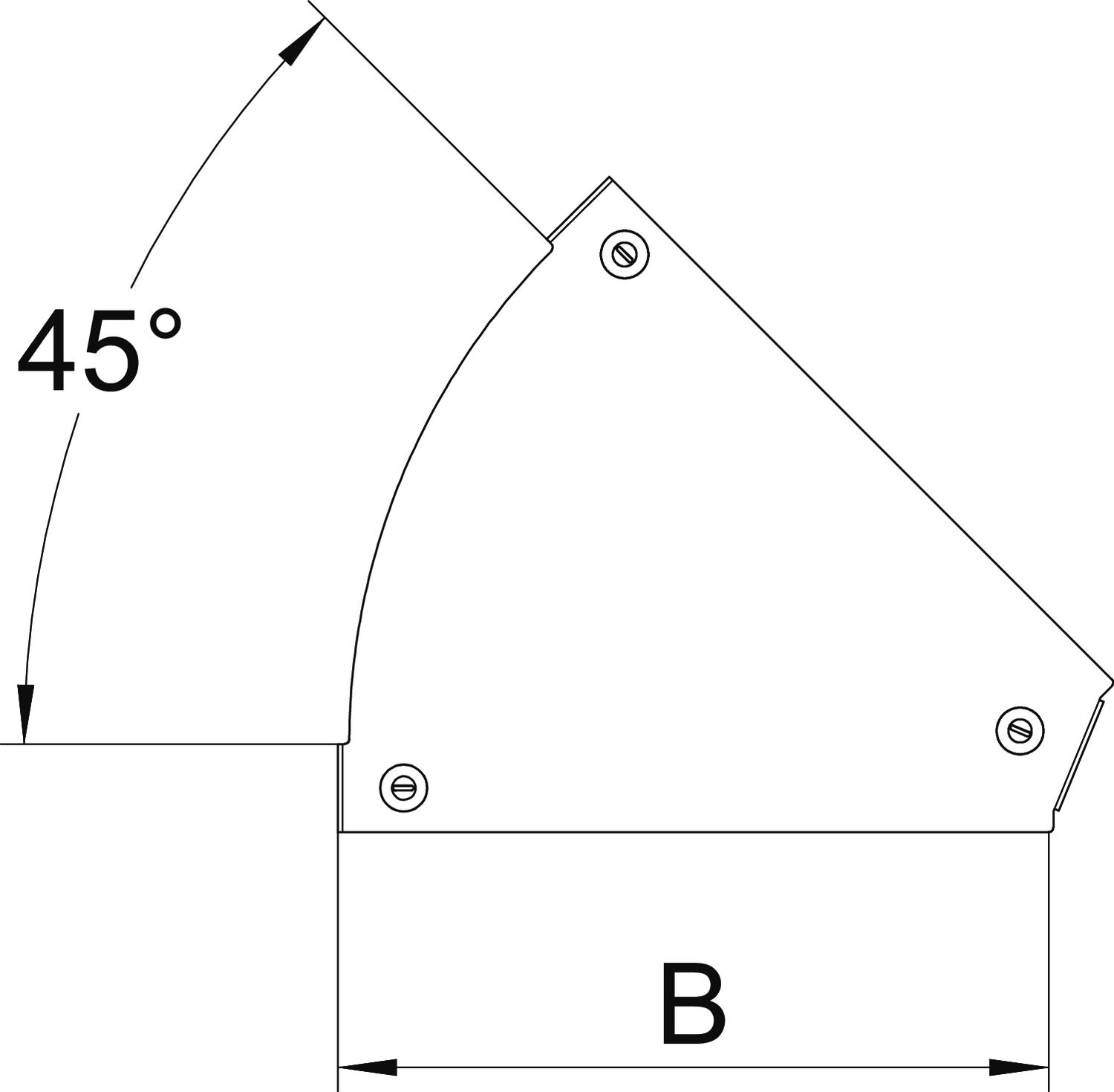 Bend (angle) 45° Change of direction Horizontal Dimension B=150mm Dimension B 150 mm Fastening type Sash lock Hinged no Maintain electrical functions no Material Steel Plate thickness 1,25 mm Plate thickness 0,05 in Rustproof steel, pickled no Suitable for cable ladder no Suitable for cable tray yes Suitable for mesh cable tray no Surface Strip galvanised zinc/aluminium, Double Dip Width 6 in Width 150 mm - All types
