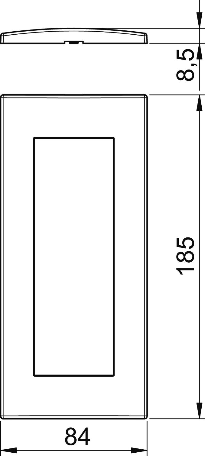 Antibacterial treatment no Anzahl der Einheiten vertikal 3 CO2 Footprint (GWP) Cradle-to-Gate 0,0289 kg CO2e / 1 Piece Colour Aluminium painted Depth 8,5 mm Dimension 84x185mm Einbaubreite 135 mm Fastening type Clamp fastening Halogen-free yes Height 84 mm Hinged cover no Installation height 45 mm Material Polycarbonate Mounting direction Horizontal and vertical Number of units 3 Number of units, horizontal 3 Protection rating Other Suitable for built-in installations yes Suitable for device installation ducts yes Suitable for flush-mounted installations no Suitable for underfloor duct socket no Surface version Matt Text field/inscription field no Transparent no Width 185 mm With mounting frame no - All types