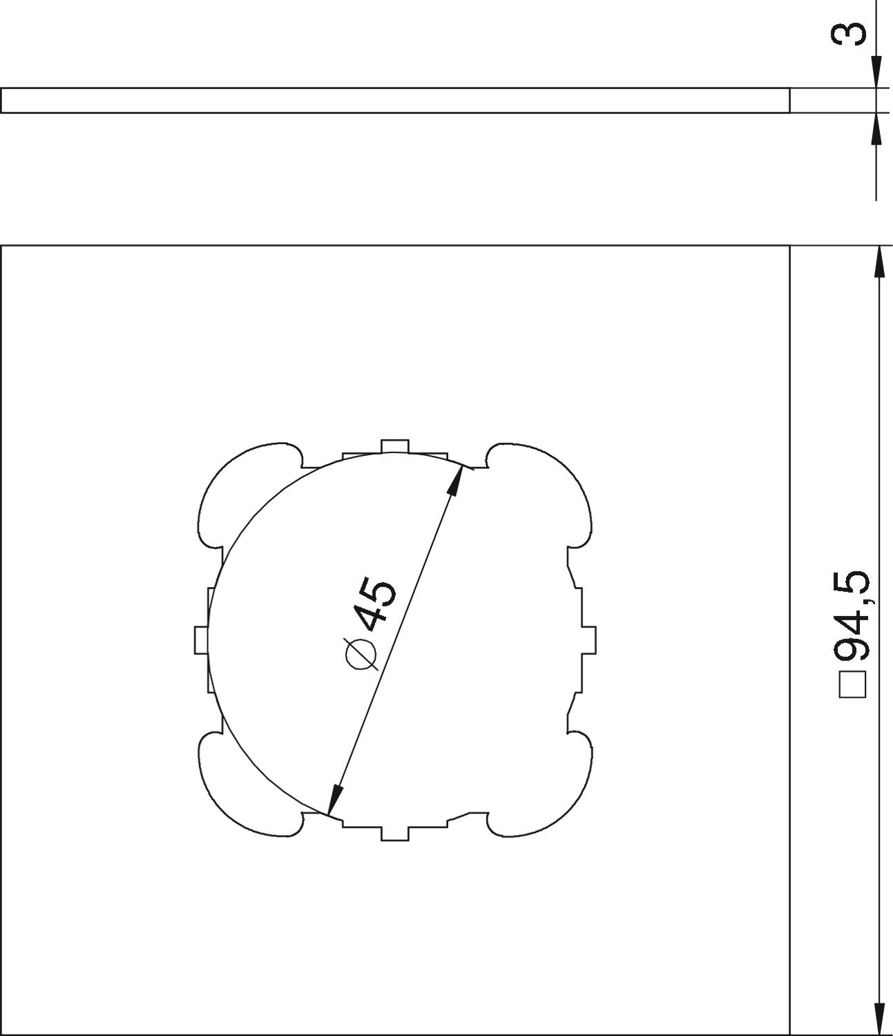 Product descriptionCover plate with opening Ø 45 mm for the installation of a device with concealed support ring or support clamp.