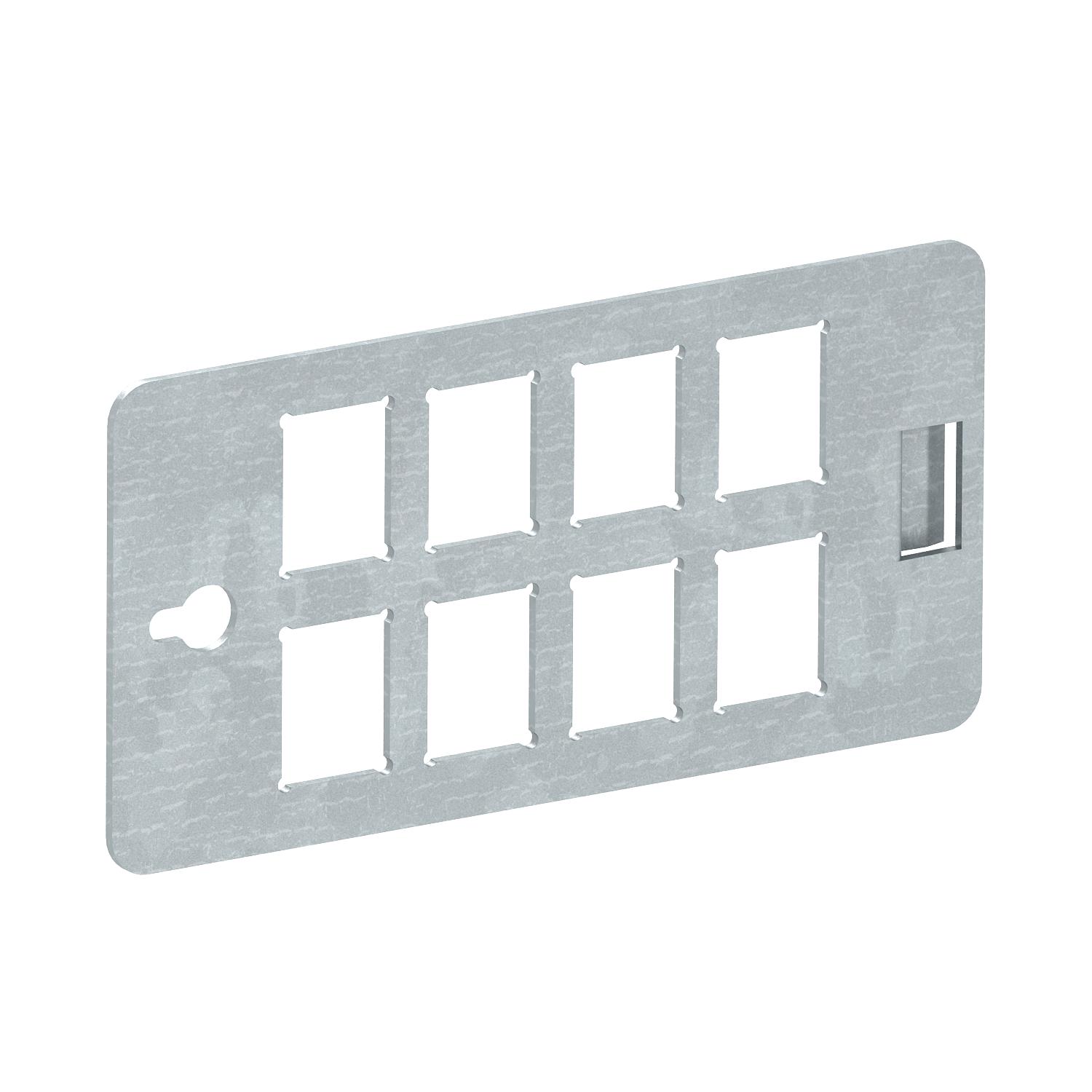 Product descriptionSupport plate, type C, to accept eight data connection modules in a Consolidation Point housing. Type C has a mounting opening of 19.30 x 14.80 mm.