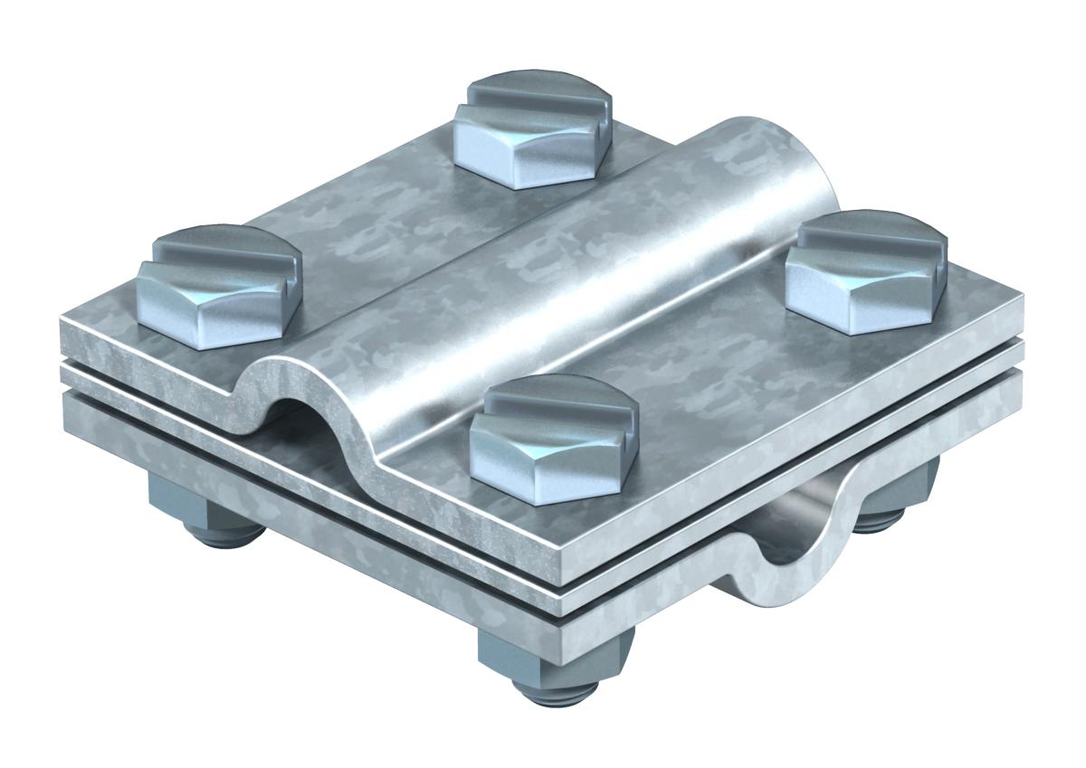 CO2 Footprint (GWP) Cradle-to-Gate 0,6263 kg CO2e / 1 Piece Dimension 8-10mm Dimension A 60 mm Dimension B 60 mm Fit Rd 8-10 mm Intermediate plate yes Lightning current carrying capacity H/100 kA Material Steel Suitable for connection Round conductor Rd 8–10 / Rd 8–10 Surface Hot-dip galvanised Type of connector Cross-connectors Type of fastening screw Hexagonal bolt - All types