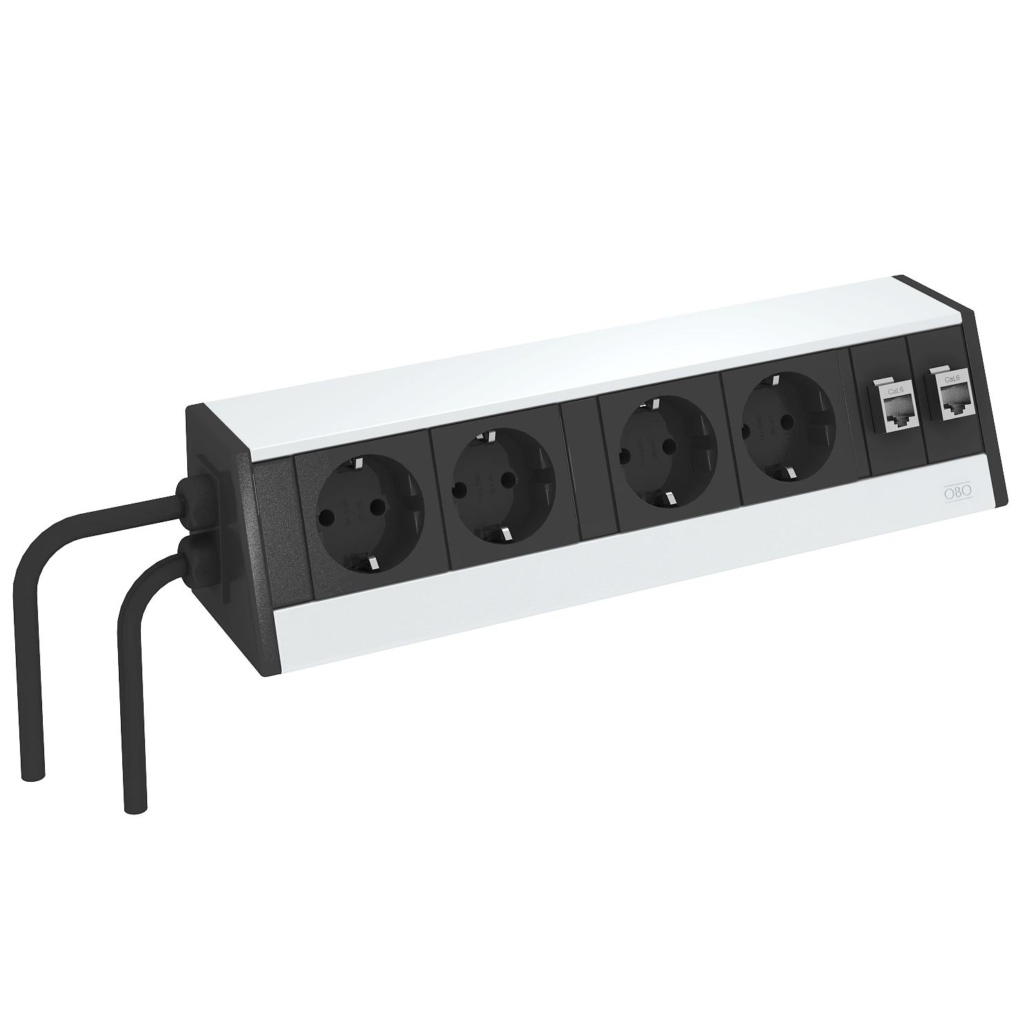 Colour aluminium Extendable no Foldable no Height 70 mm Length 300 mm Length of the supply cable 3 m Material Aluminium Number of CAT 6 connections 2 Number of SCHUKO sockets 4 Surge protection no Version for Housing, silver anodised - All types