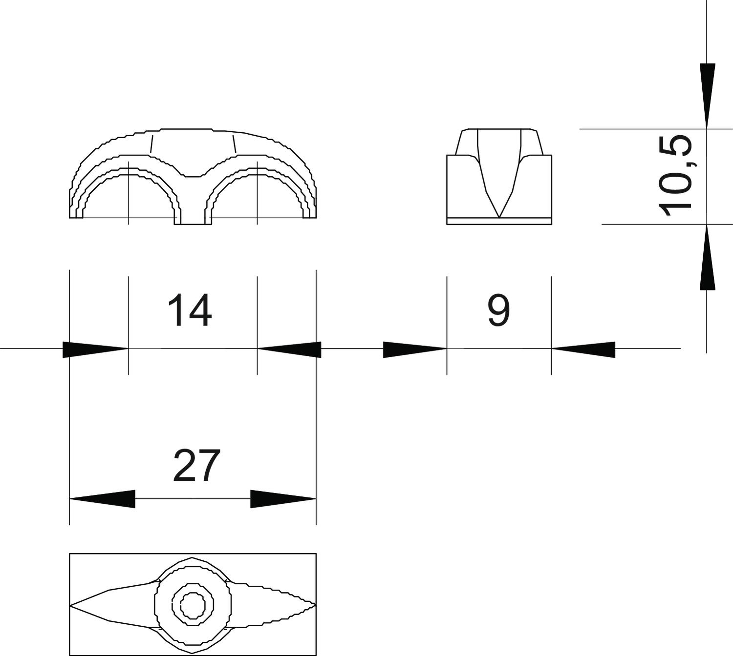 CO2 Footprint (GWP) Cradle-to-Gate 0,0032 kg CO2e / 1 Piece Colour Light grey; RAL 7035 Dimension 7-11mm Dimension B 9 mm Dimension H 10,5 mm Dimension L 27 mm Dimension L1 14 mm Double clip yes for cable diameter, max. 11 mm for cable diameter, min. 7 mm For nail diameter 2,0 Halogen-free yes Hardened no Impact-resistant no Material Polystyrene Pipe locking no Shape Round (for round conductor) With nail no - All types