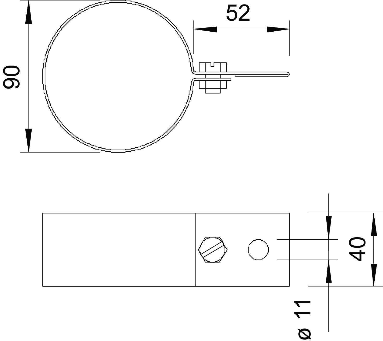 Bimetal connector no Clamping range, min. 90 mm CO2 Footprint (GWP) Cradle-to-Gate 0,3568 kg CO2e / 1 Piece Connection hole 11 mm Dimension 90mm Dimension d min. 90 mm explosion-proof no Integrated round conductor guide no Material Steel Surface Strip galvanized - All types