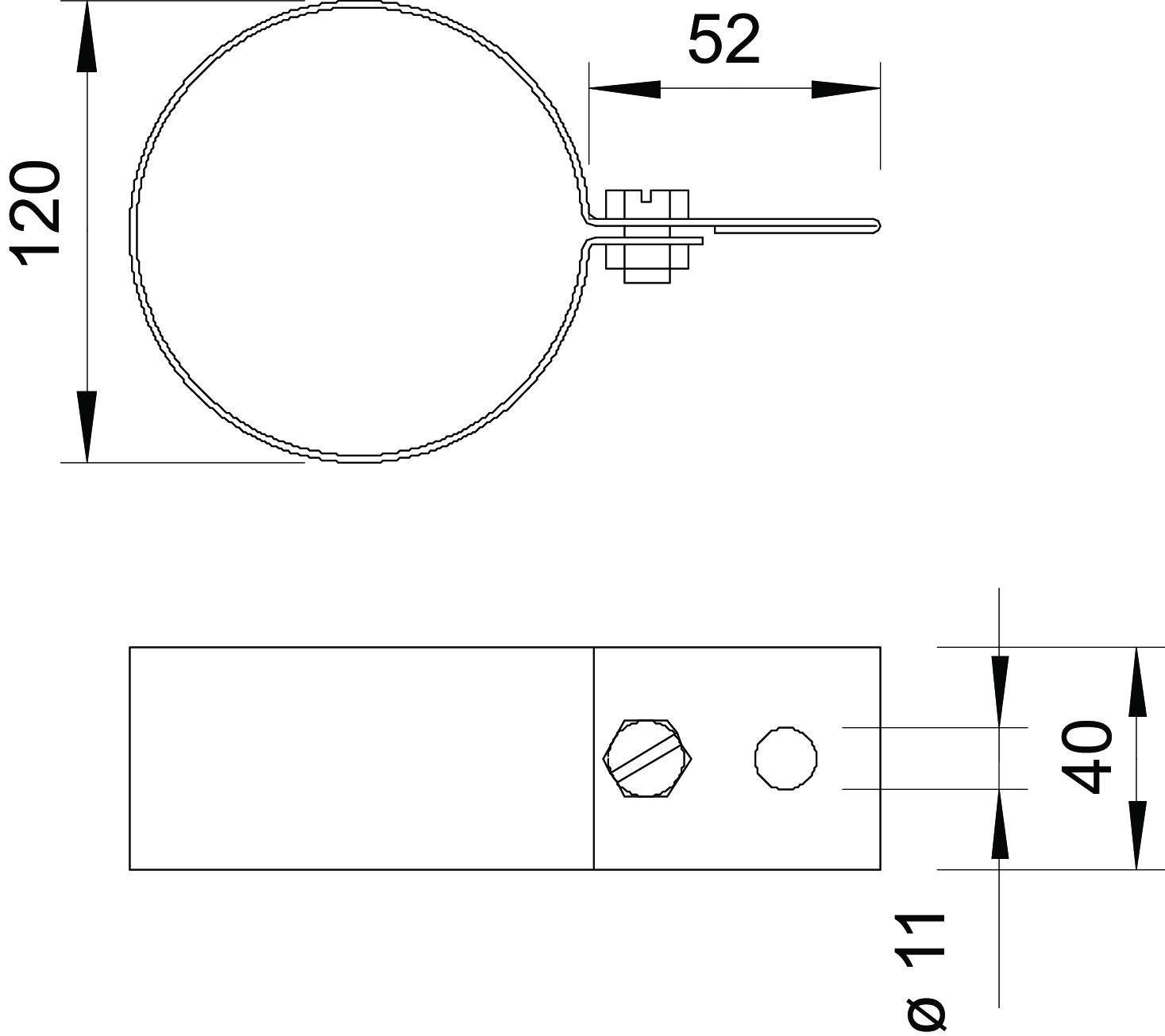 Bimetal connector no Clamping range, min. 120 mm CO2 Footprint (GWP) Cradle-to-Gate 0,5284 kg CO2e / 1 Piece Connection hole 11 mm Dimension 120mm Dimension d min. 120 mm explosion-proof no Integrated round conductor guide no Material Steel Surface Strip galvanized - All types