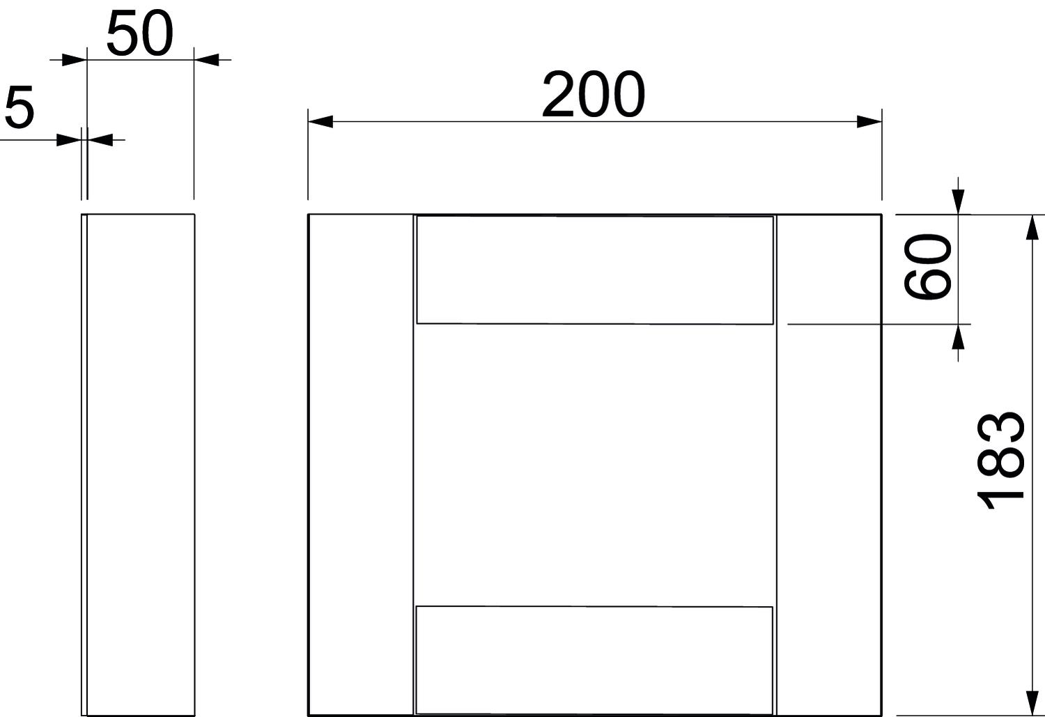 Classification EI − installation duct 90 Colour Grey Dimension 100x80 Dimension A 60 mm Dimension B 200 mm Dimension H 183 mm Dimension L 50 mm Height 183 mm Jacketing Without Length 50 mm Material Fibreglass lightweight concrete Material of the insulation Glass-fibre lightweight concrete Version for Left/right Width 200 mm - All types