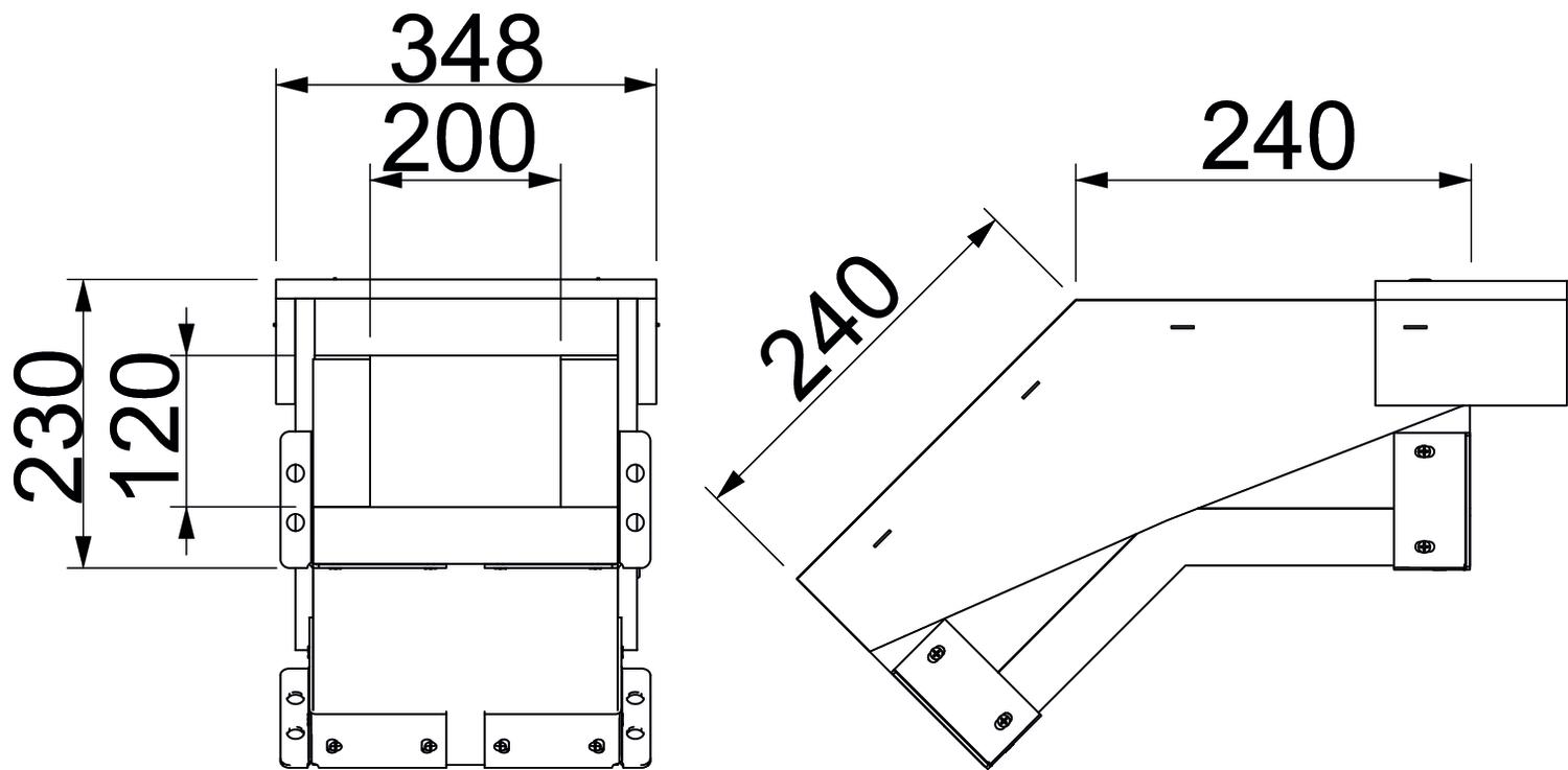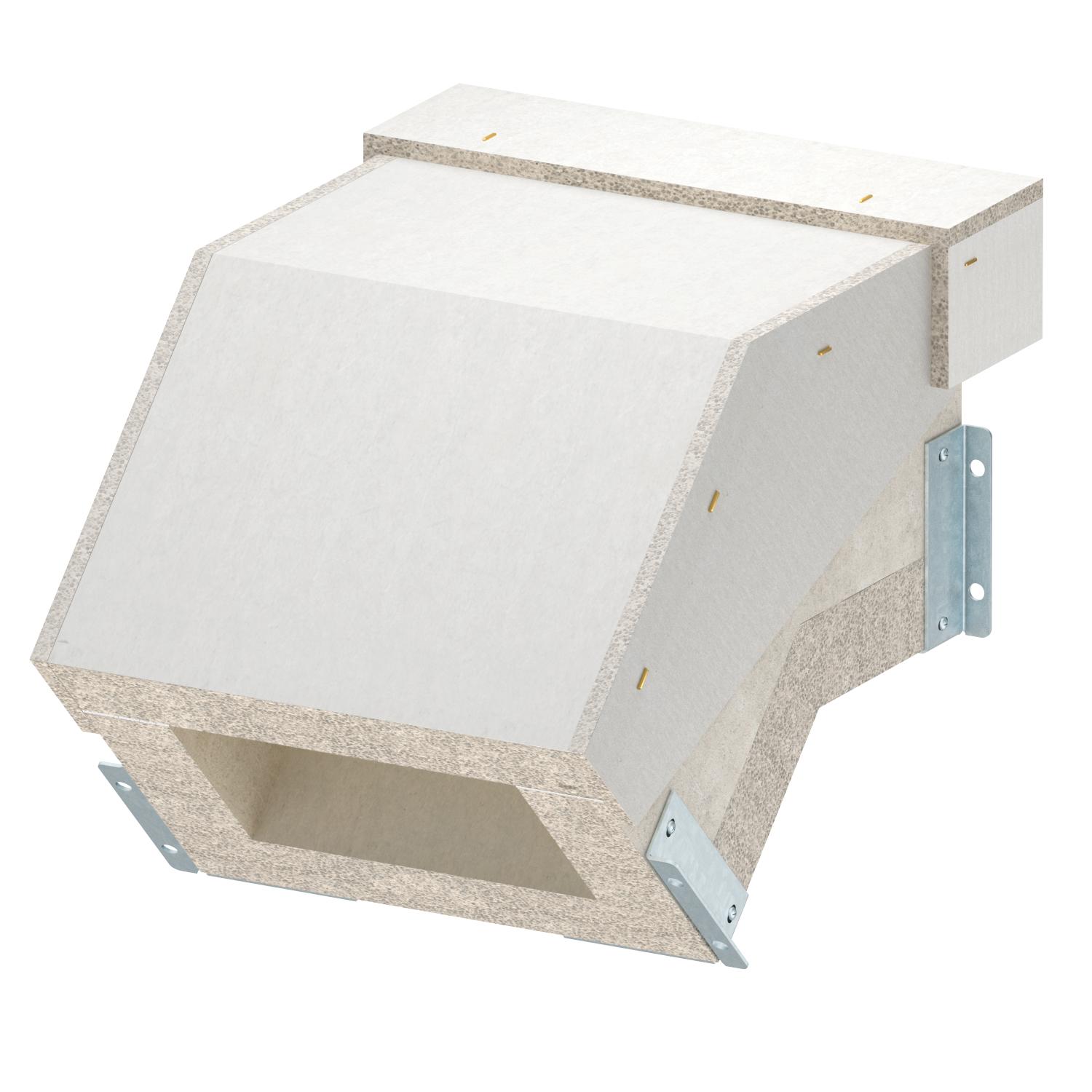 Angle of the bend 45 ° Classification EI − installation duct 90 Colour Grey Cover fastening Loose Dimension 200x120 Dimension b 200 mm Dimension B 348 mm Dimension H 230 mm Dimension h 120 mm Dimension L 240 mm Jacketing Without Material Fibreglass lightweight concrete Material of the insulation Glass-fibre lightweight concrete Number of flammable sides 4 With perforation no - All types