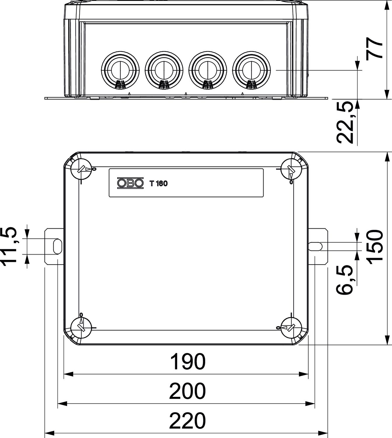 Clear internal dimensions 176x135x67 mm CO2 Footprint (GWP) Cradle-to-Gate 2,3953 kg CO2e / 1 Piece Colour Pastel orange; RAL 2003 Cover Not transparent Cover fastening Screwed Dimension 190x150x77 Dimension B 150 mm Dimension H 77 mm Dimension L 190 mm Dimension L1 200 mm Dimension L2 220 mm Double terminals 4 Entry from rear no Equipment Terminal Expandable no Explosion-tested version no For Ex zone Without For Ex zone dust Without For Ex zone gas Without Halogen-free yes Height 77 mm Impact-resistant no Length 190 mm Maintain electrical functions E 90 Material Polypropylene Measured insulation voltage Vi 690 V No. of entries 12 Nominal cross-section, max. 10 mm² Nominal cross-section, min. 4 mm² Nominal voltage 660 V Number of terminals 5 Protection rating IP66 Protective terminal 1 Sealable no Shape Rectangular Transparent lid no Type of housing penetration Cuttable stepped membrane Weatherproof no Width 150 mm with lid yes With screening no - All types
