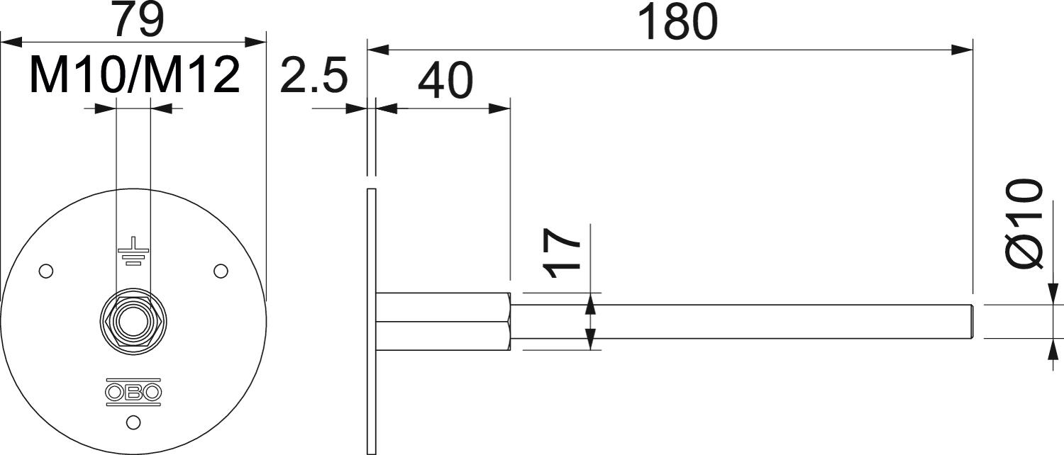 CO2 Footprint (GWP) Cradle-to-Gate 1,4557 kg CO2e / 1 Piece Diameter of the connection bolt 10 mm Diameter of the contact plate 79 mm Dimension M10/M12 Length 180 mm Lightning current carrying capacity H/100 kA Material Stainless steel 1.4404 Material of the connection bolt Stainless steel, rustproof (V4A) Short-circuit current (50 HZ)(1 s;≤300°C) 3,3 kA Thread M10/M12 - All types