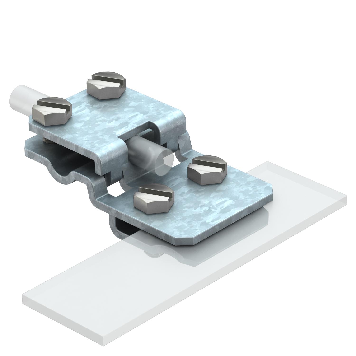 Clamping range, max. 5 mm CO2 Footprint (GWP) Cradle-to-Gate 0,3872 kg CO2e / 1 Piece Dimension 8mm Fit Rd 8 mm Lightning current carrying capacity N/50 kA Material Steel Surface Hot-dip galvanised Type of connector Folding clamp Type of fastening screw Hexagonal bolt - All types