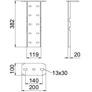 Product descriptionBase plate for accepting wide span systems, for example, for vertical routing of wide span cable trays.
