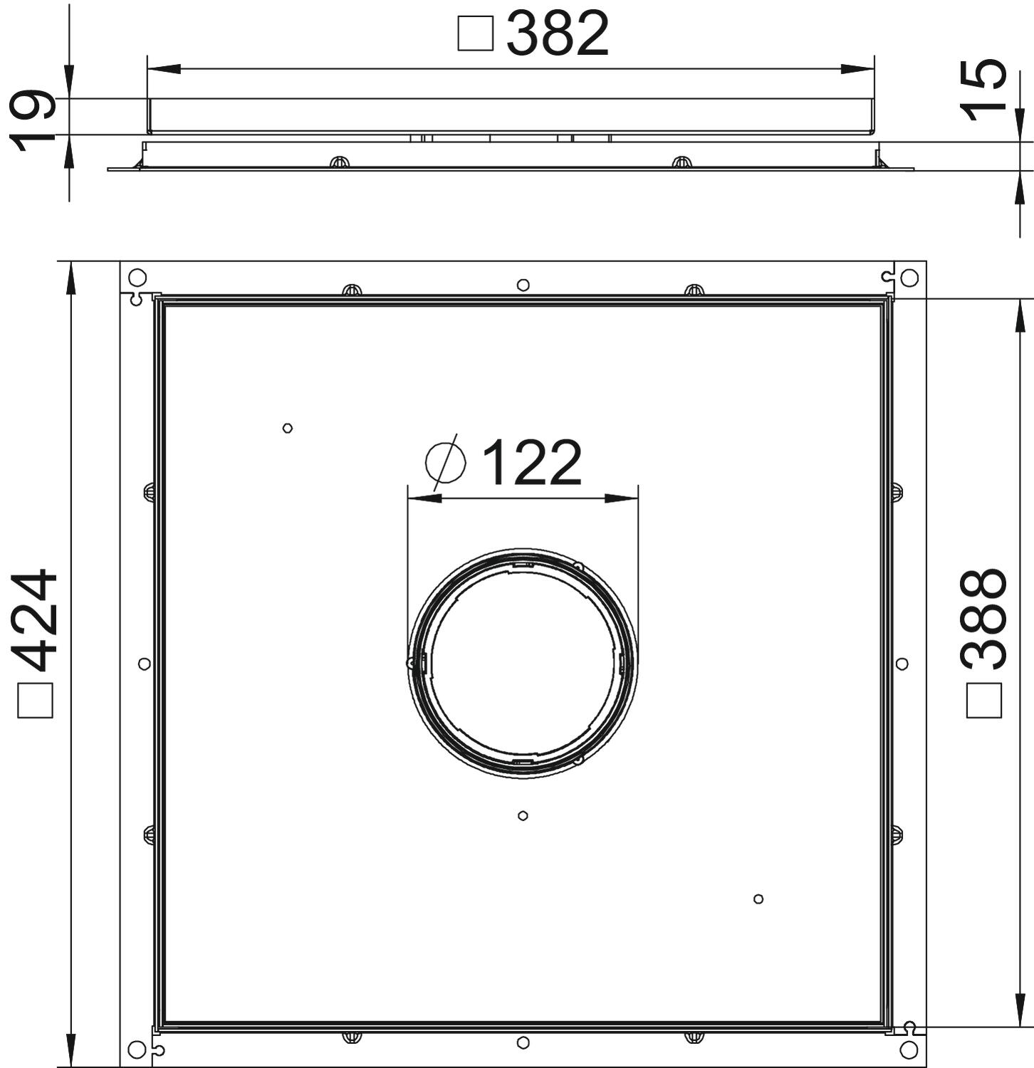Cable outlet version Lowerable tube body CO2 Footprint (GWP) Cradle-to-Gate 34,1255 kg CO2e / 1 Piece Device support to accept mounting boxes no Dimension 383x383x15 Dimension A 424 mm Dimension B 388 mm Dimension C 382 mm Dimension h 15 mm Floor care Wet Floor covering thickness 13 mm Material Stainless steel 1.4301 Number of cable outlets 1 - All types