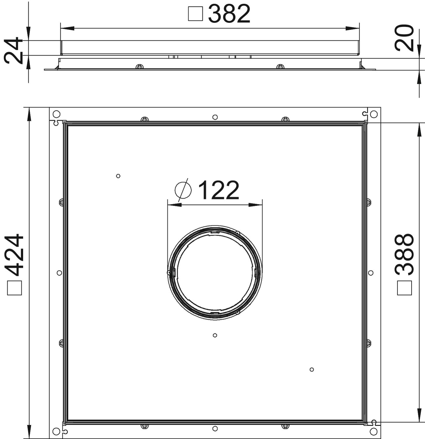 Cable outlet version Lowerable tube body CO2 Footprint (GWP) Cradle-to-Gate 34,6875 kg CO2e / 1 Piece Device support to accept mounting boxes no Dimension 383x383x20 Dimension A 424 mm Dimension B 388 mm Dimension C 382 mm Dimension h 20 mm Floor care Wet Floor covering thickness 18 mm Material Stainless steel 1.4301 Number of cable outlets 1 - All types