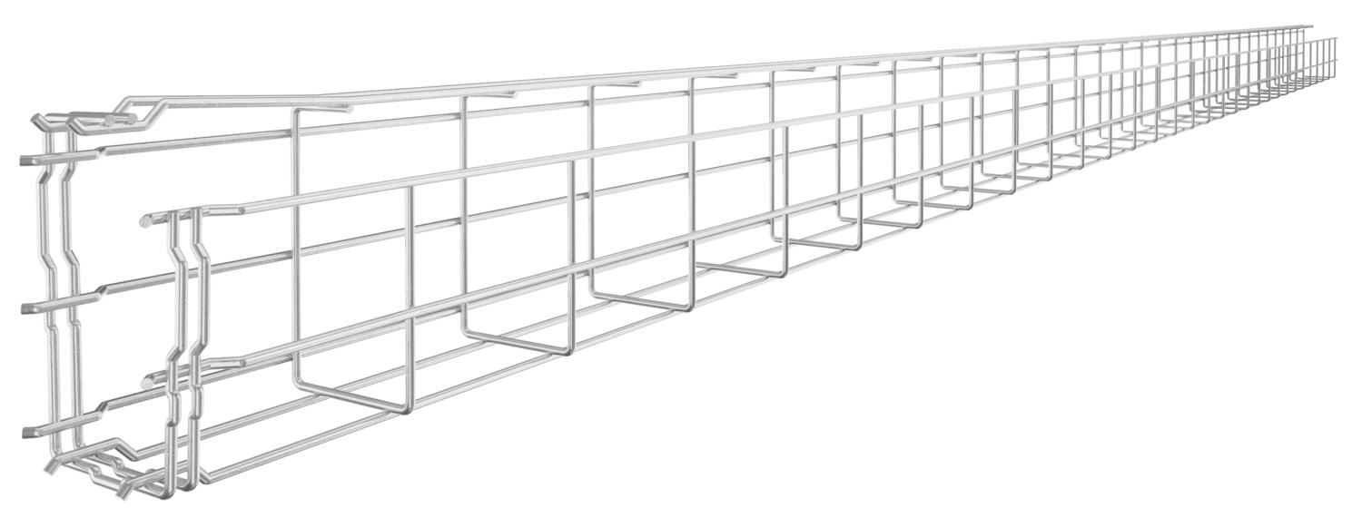 Product descriptionG-shaped mesh cable tray made of spot-welded steel wire with different side heights and widths.