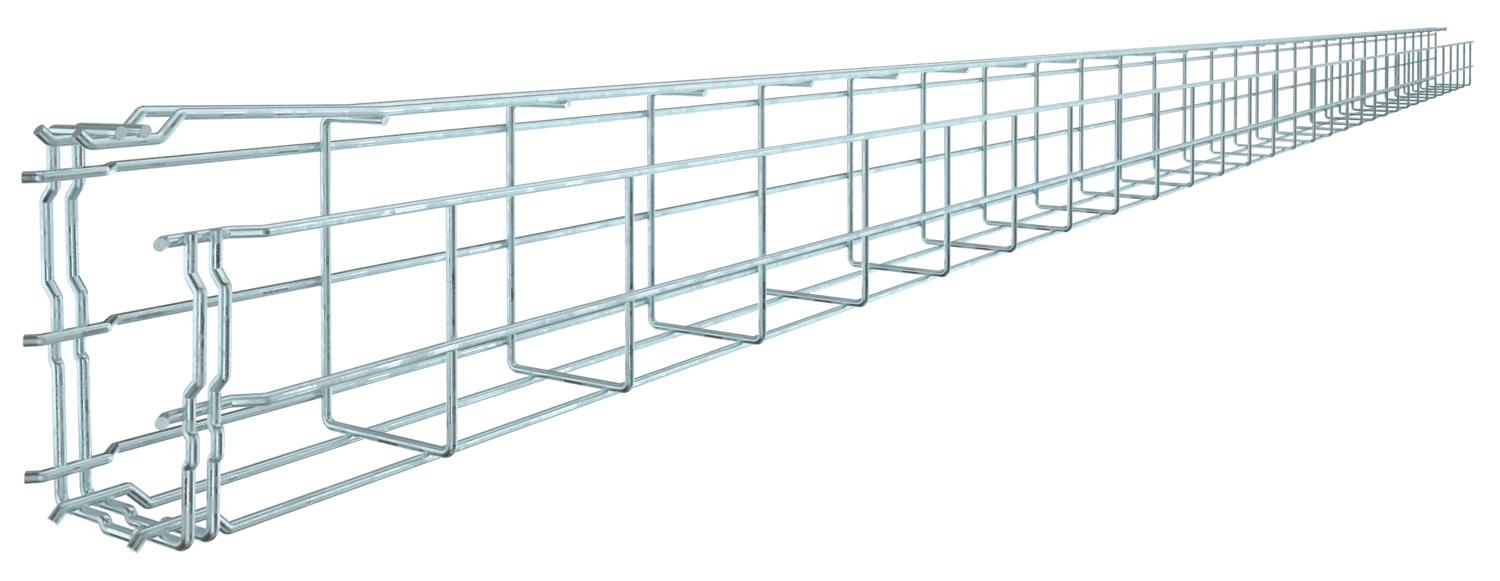 Product descriptionG-shaped mesh cable tray made of spot-welded steel wire with different side heights and widths.