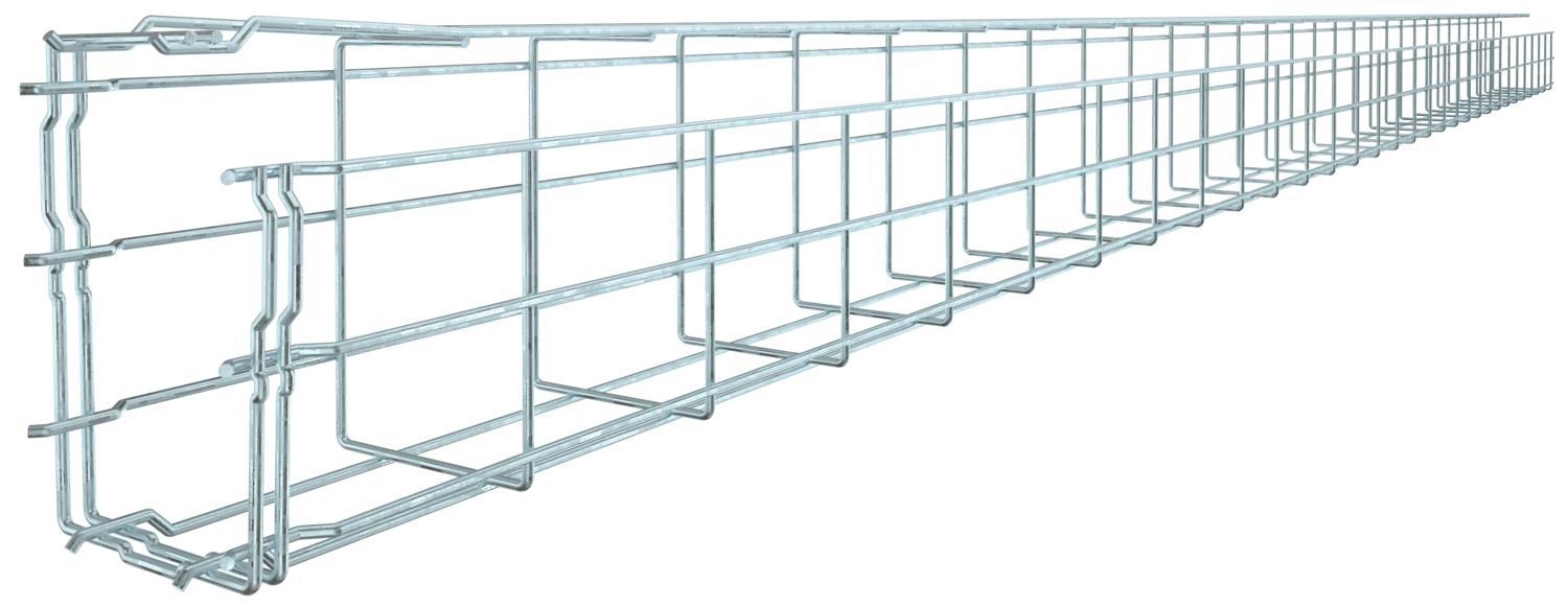 Product descriptionG-shaped mesh cable tray made of spot-welded steel wire with different side heights and widths.