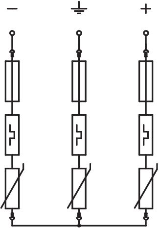 • (+) poles protected via 4 photovoltaic fuses 10x38 mm 10 A, 1,000 V DC protected