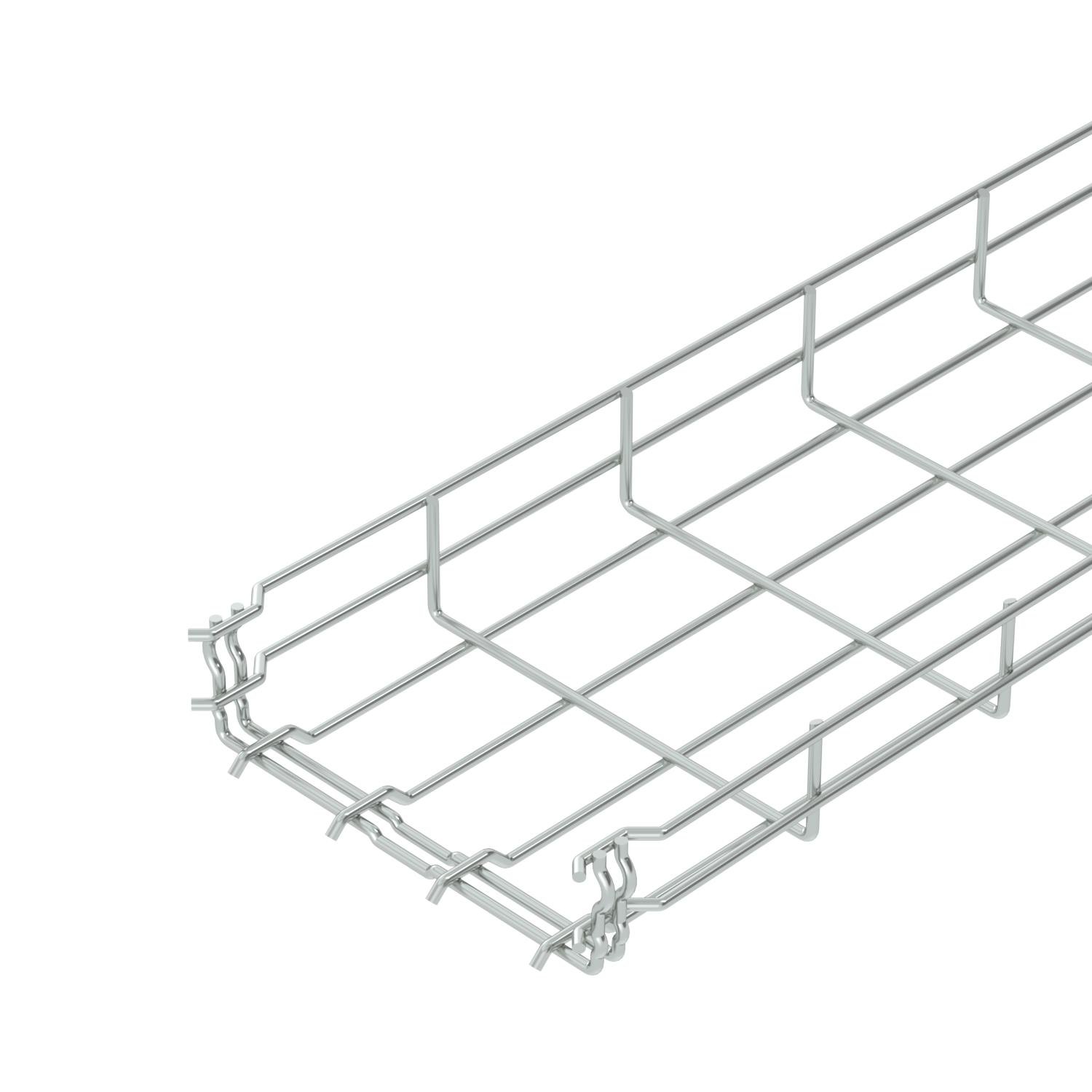 No additional connection components are required for the mesh cable tray, it is simply interlocked. The grid width is 50 x 100 mm (exception: GRM 55/50 = 20 x 100 mm). Tested for the maintenance of electrical function according to DIN 4102 Part 12 (type: GRM 55 200 4.8 G, GRM 55 300 G, GRM 55 400 G, mounting work and parameters according to valid test certificate).