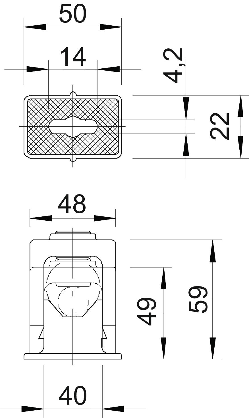 Product descriptionSolid cable fastening through clamping screws, with adhesive base, slot and for screwing to M6 thread.