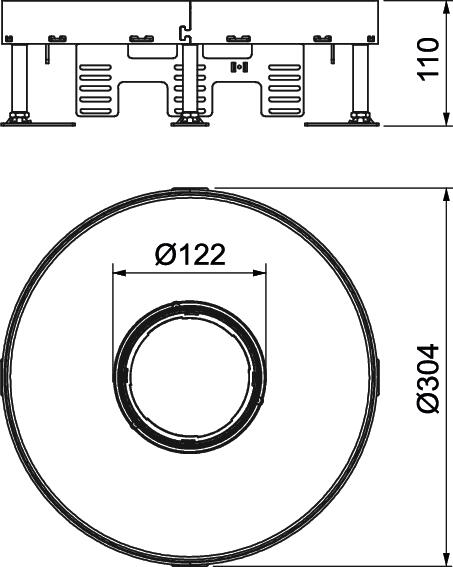 Approvals VDE Cable outlet version Lowerable tube body CO2 Footprint (GWP) Cradle-to-Gate 19,5393 kg CO2e / 1 Piece Decouplable no Device support to accept mounting boxes yes Dimension Ø305mm Floor care Wet Floor covering thickness 20 mm Floor height, max. 155 mm Floor height, min. 110 mm Heavy-duty version no Height-adjustment range, max. 155 mm Height-adjustment range, min. 110 mm Installation depth 110 mm Installation diameter 305 Installation system type UT4 Length 304 mm Material Stainless steel 1.4301 Nominal size for device installation units R9 Number of cable outlets 1 Number of installable devices 12 Number of mounting boxes 3 Protection rating (IP) when unused IP44 Protection rating (IP) when used IP20 Protection rating IK code IK10 Suitable for cavity floor installation yes Suitable for raised floor installation yes Version for Round Vertical load, large area to 5,000 N Vertical load, small area to 3,000 N Width 304 mm - All types