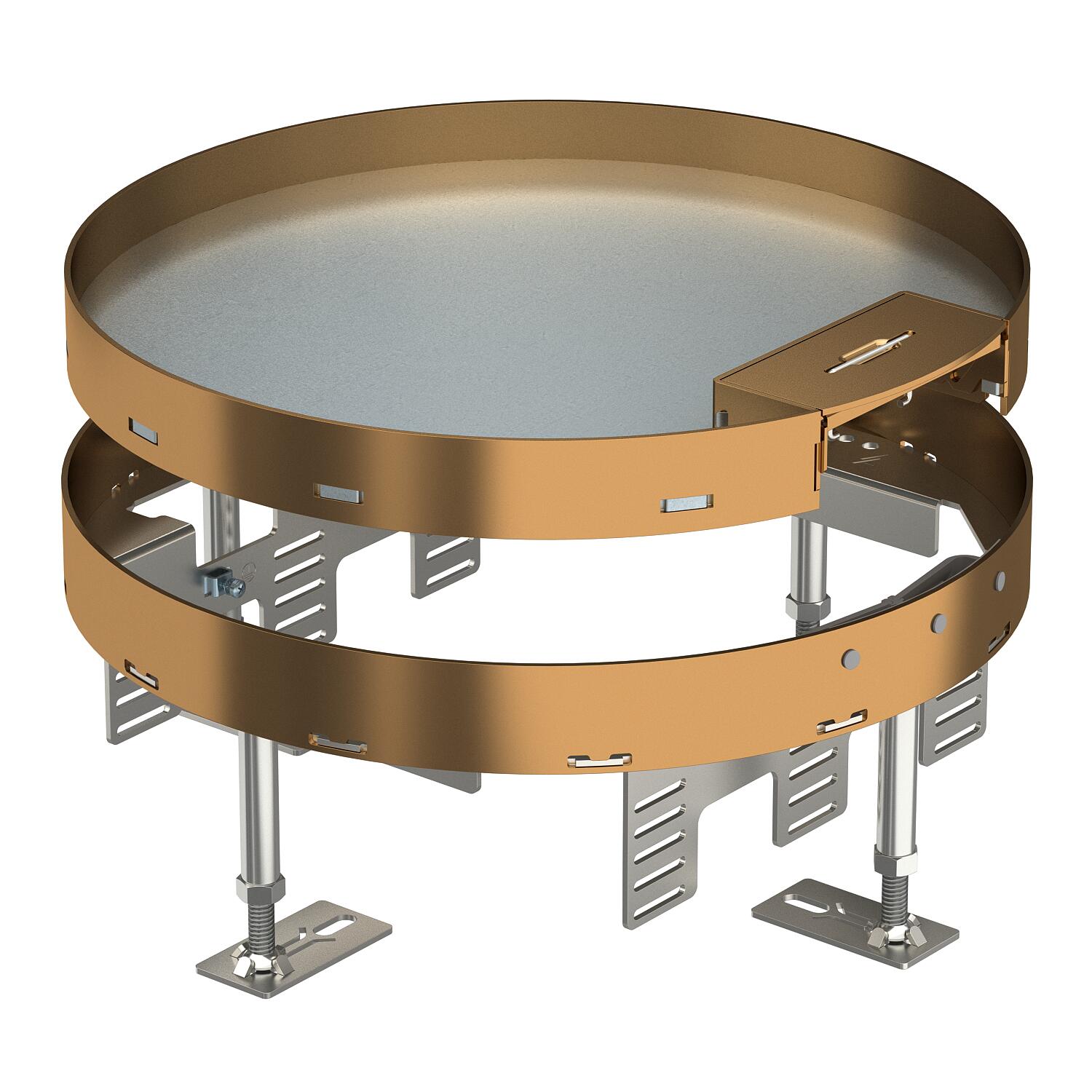 Height-adjustable cassette for cord outlet, 3-compartment. 3 APMT5 cover plates can be installed. For the installation of 3 UT4 universal supports for 9 individual installation devices with support ring/support clamp or 12 Modul 45 devices.