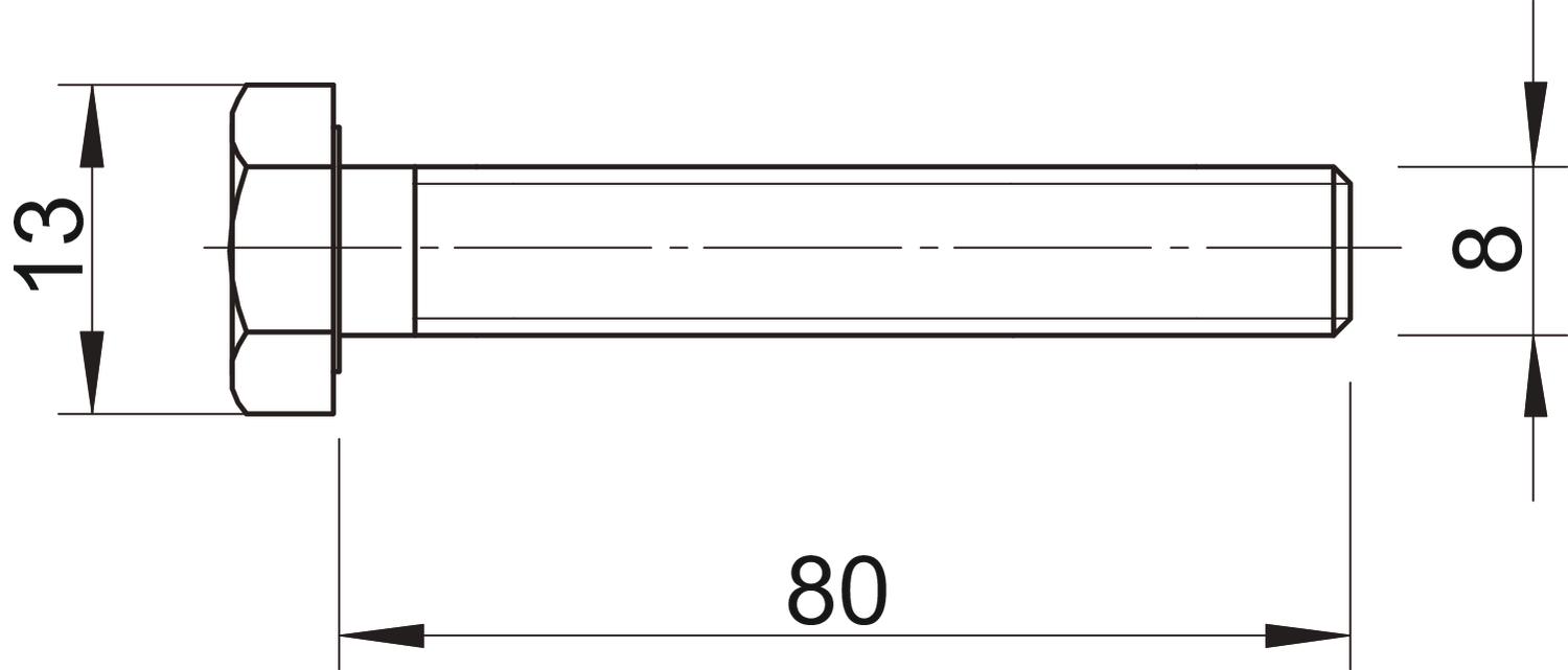 CO2 Footprint (GWP) Cradle-to-Gate 0,0753 kg CO2e / 1 Piece Dimension M8x80 Dimension d 8 mm Dimension L 80 mm Full thread yes Left thread no Length 80 mm Material Steel Resistance grade 8.8 Screw system Hexagonal Self-locking no Surface Zinc slat Thread M8 Thread length 80 mm Thread metric 8 Thread type Metric WAF 13 With flange no With nut no With washer no - All types