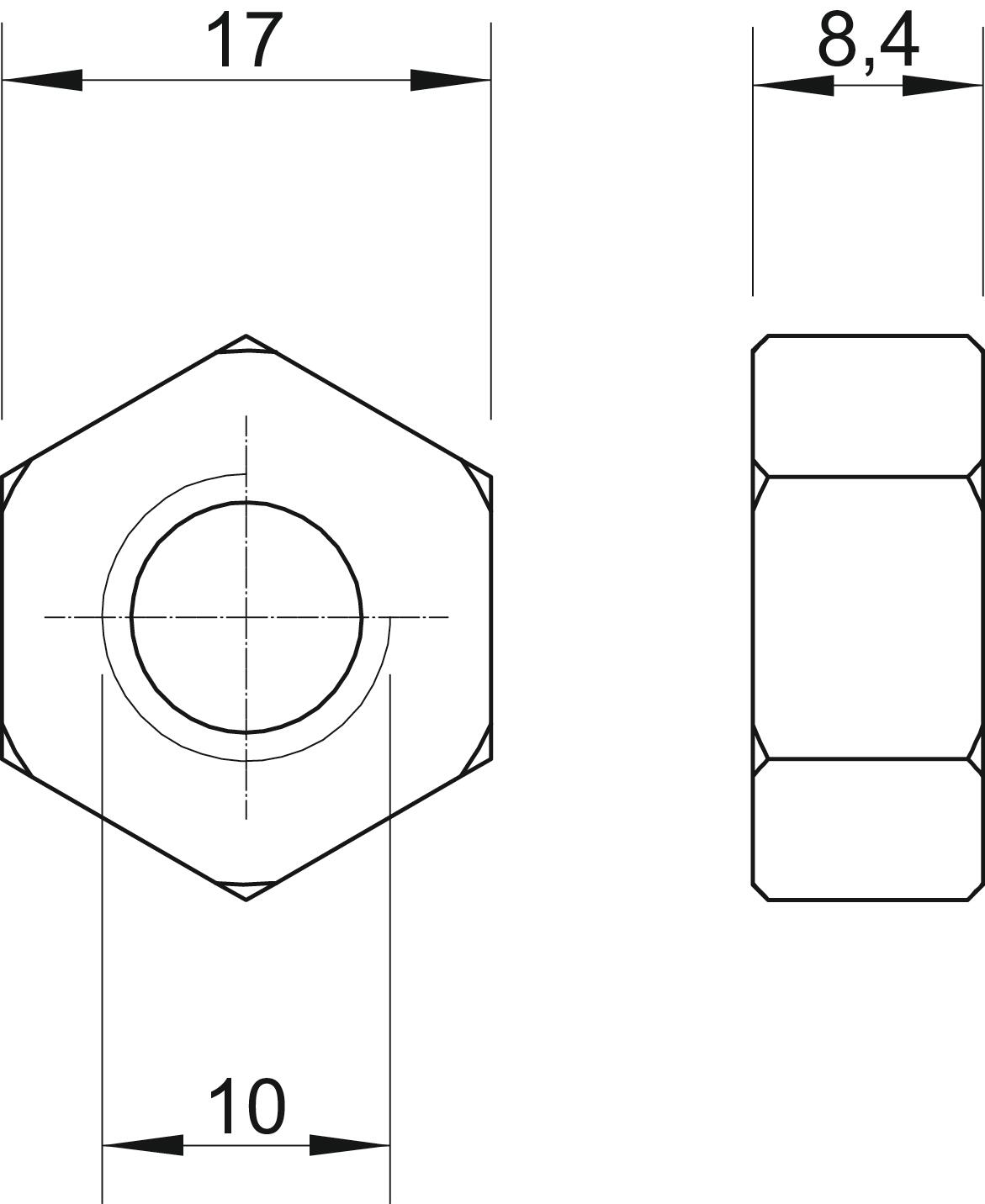 Product descriptionHexagonal nut to DIN 934 with metric thread.