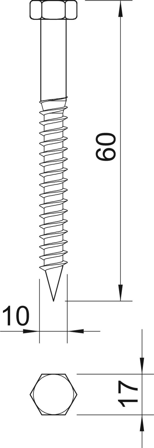 Product descriptionHexagonal screw to DIN 571 with wood thread. Suitable for anchors, type 910.