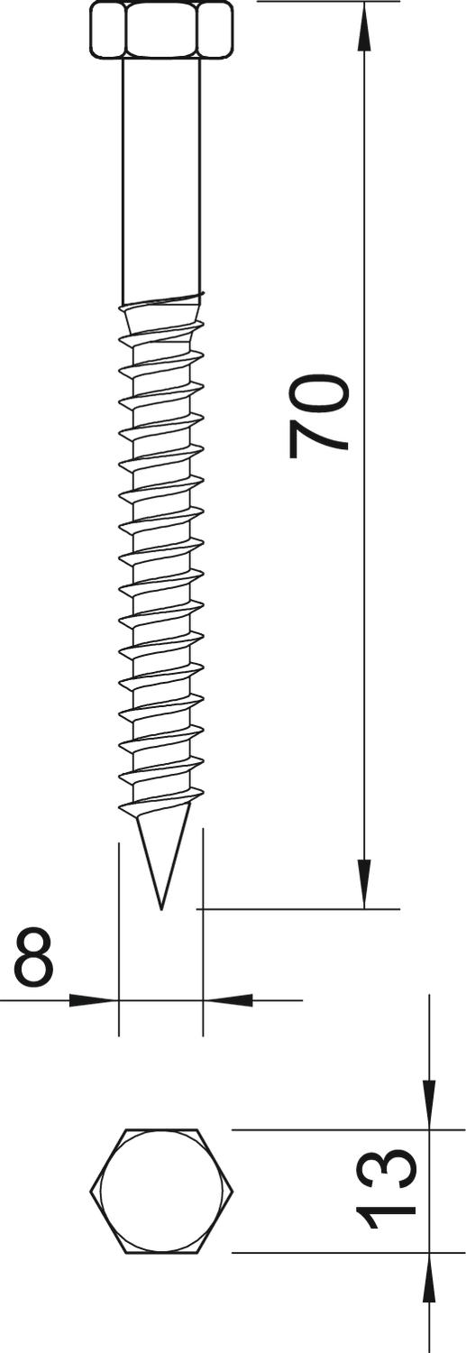 Product descriptionHexagonal screw to DIN 571 with wood thread. Suitable for anchors, type 910.