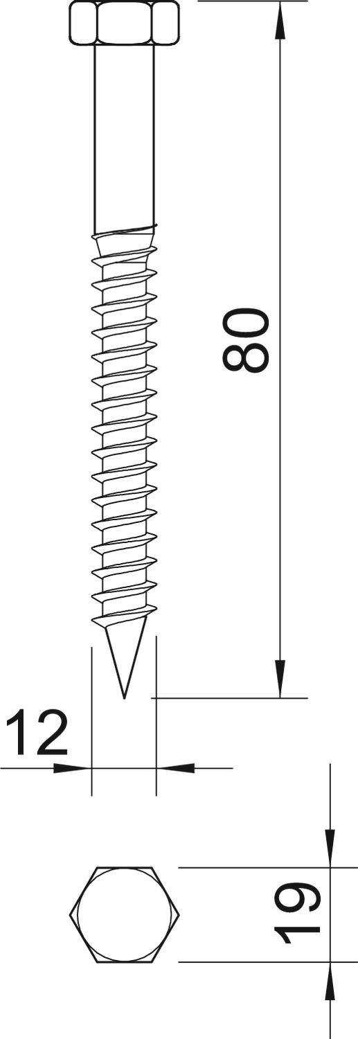 Product descriptionHexagonal screw to DIN 571 with wood thread. Suitable for anchors, type 910.